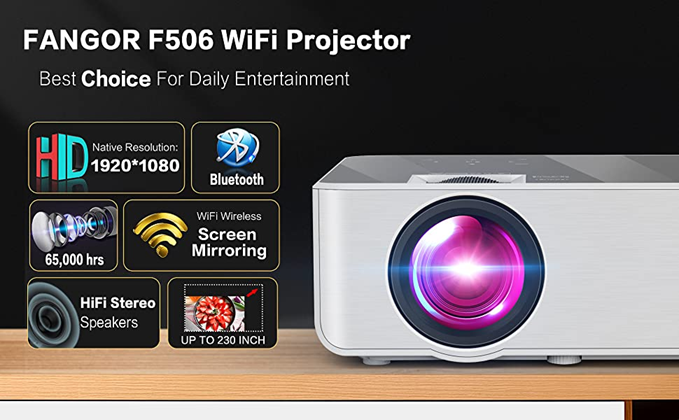 FANGOR F506 Native 1080P Projector with a true 1920 x 1080 Resolution, It delivers bright large-screen with fantastic image clarity, outstanding color accuracy and incredibly sharp image detail to both homes and businesses.