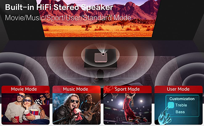 · 5W Hi-Fi stereo surround speaker (This projector does not support Dolby, please turn it off when using it.)