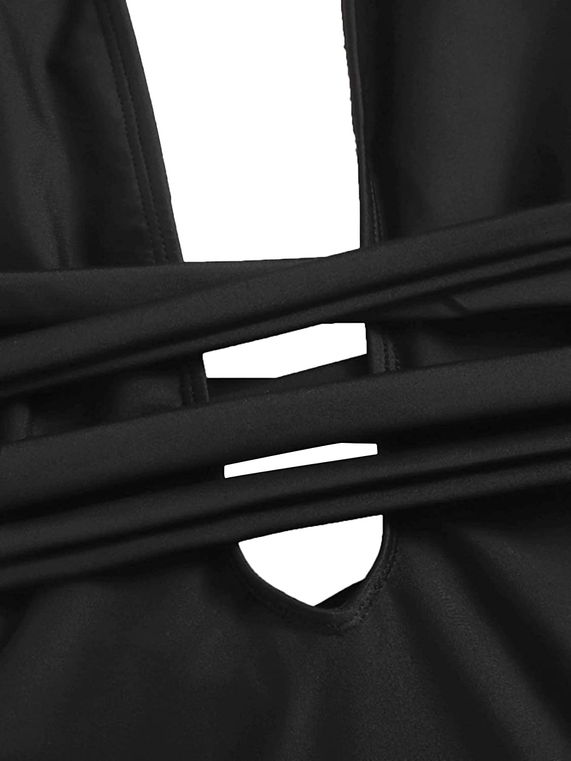 SweatyRocks Women's Sexy Basic Criss Cross Tie Knot Front Deep V Open Back One Piece Swimwear