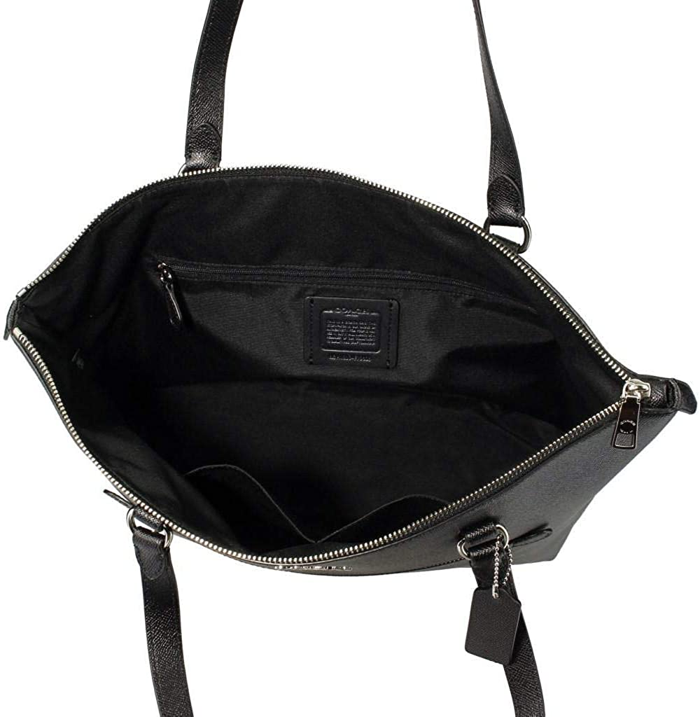 - Crossgrain leather Inside zip, cell phone and multifunction pockets Zip-top closure, fabric lining Handles with 10 1/4" drop Outside zip pocket 12 3/4" (L) x 10 1/2" (H) x 5 1/2" (W)