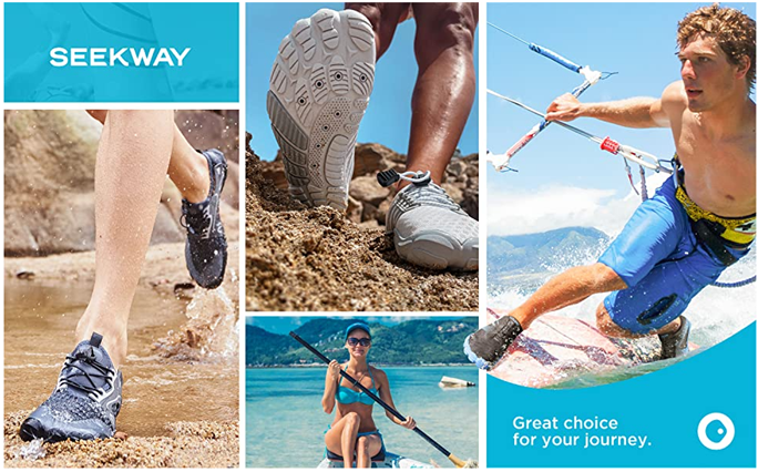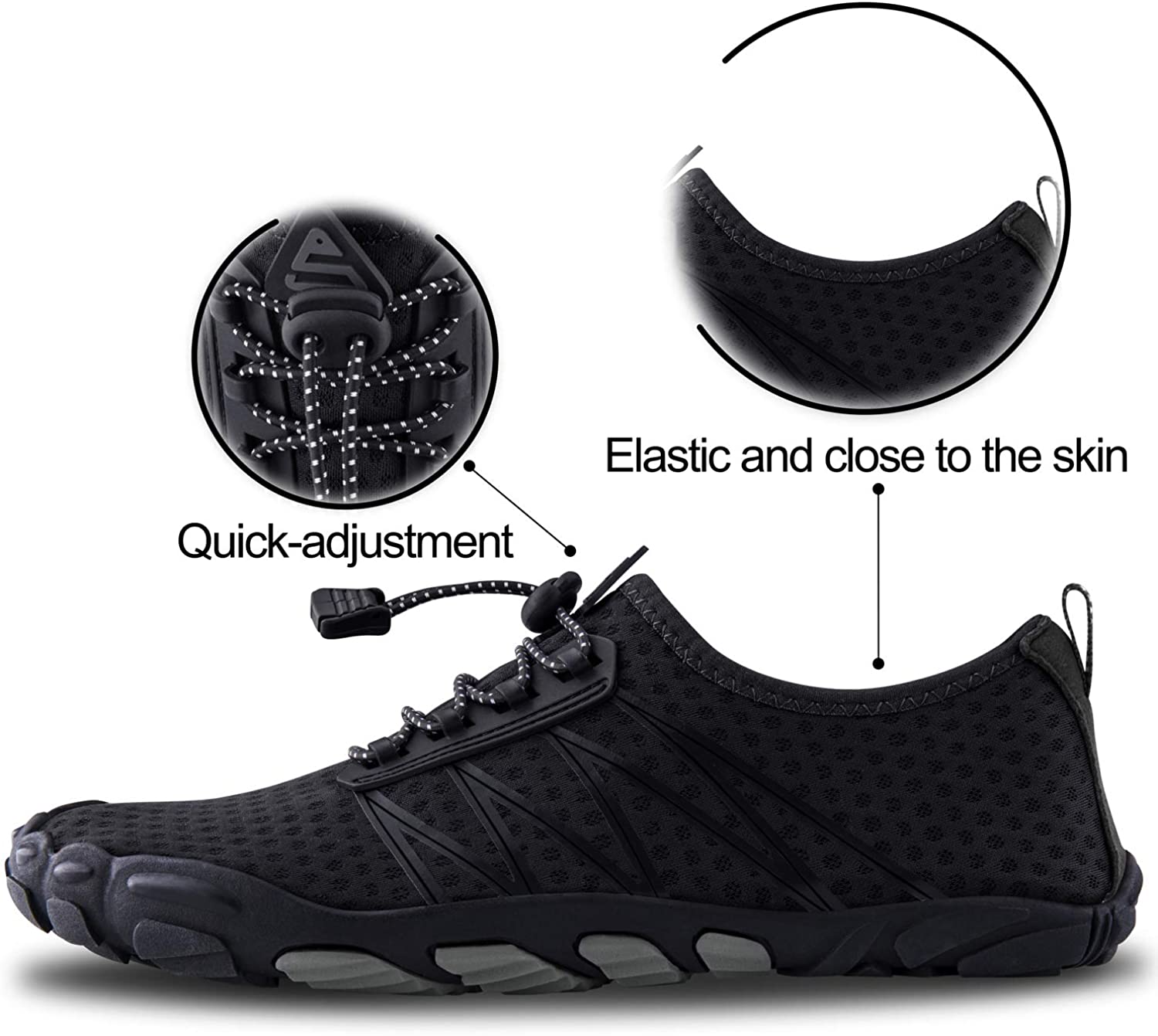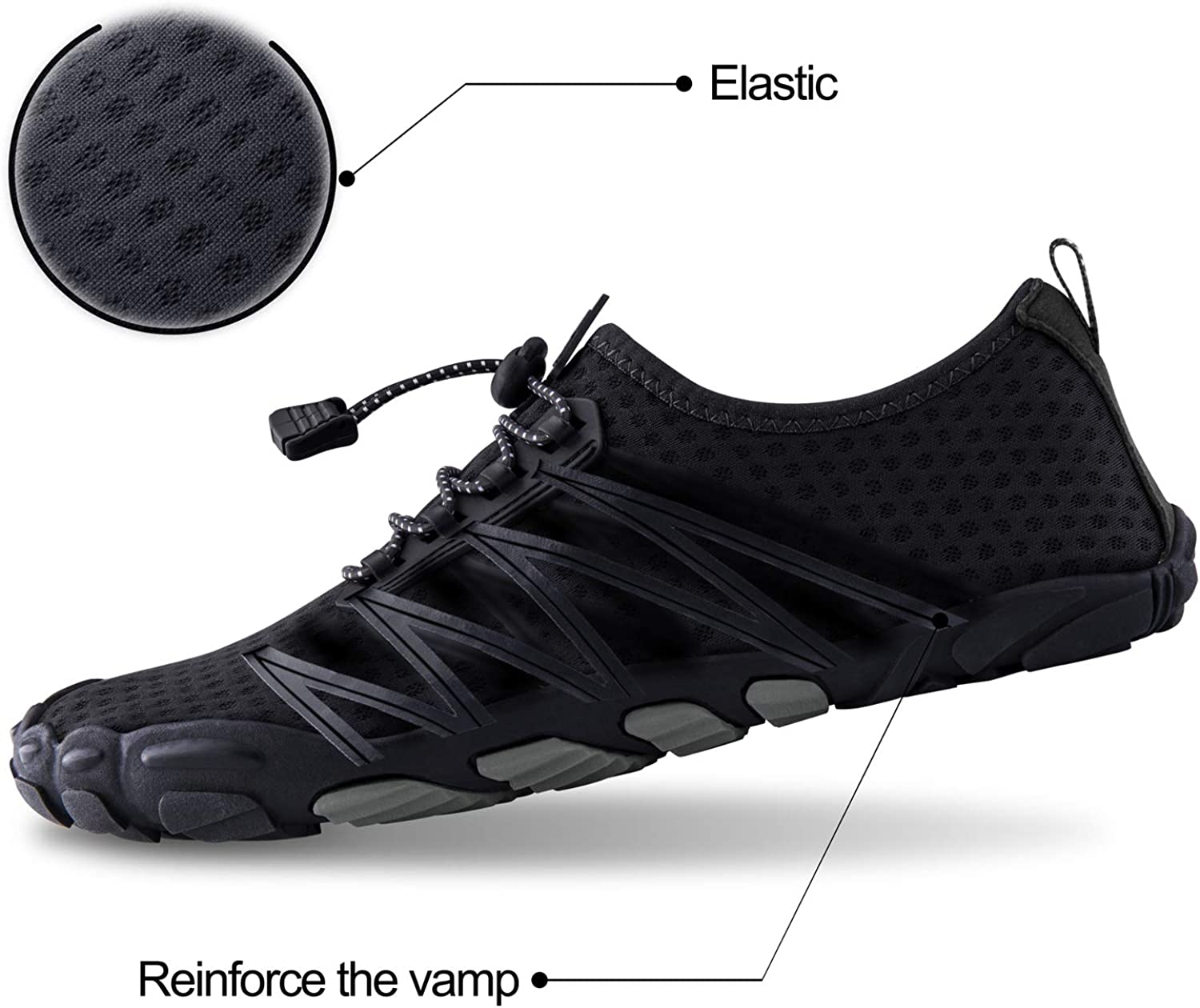 All-round Protection:Thick rubber soles and a toe cap keep your feet completely protected from sharp objects and provide great cushioning. The 3D non-slip treads provide exceptional grip even in slippery conditions. This makes it a great choice for outdoor sports.