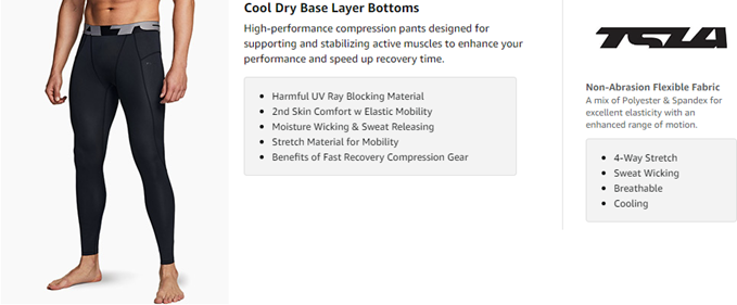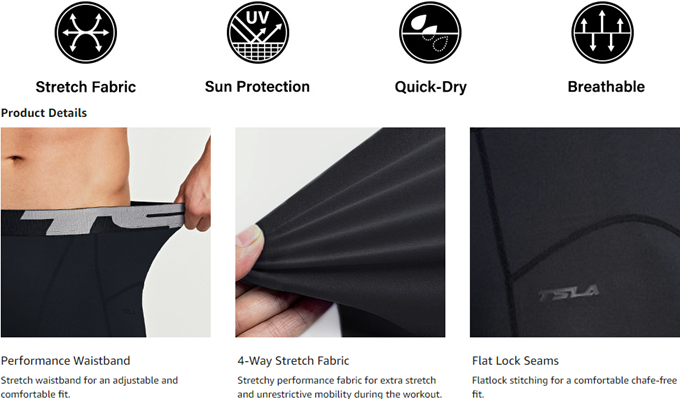 • TSLA Men's Hyper-Ctrl Compression Pants Series designed for all-weather and seasons.