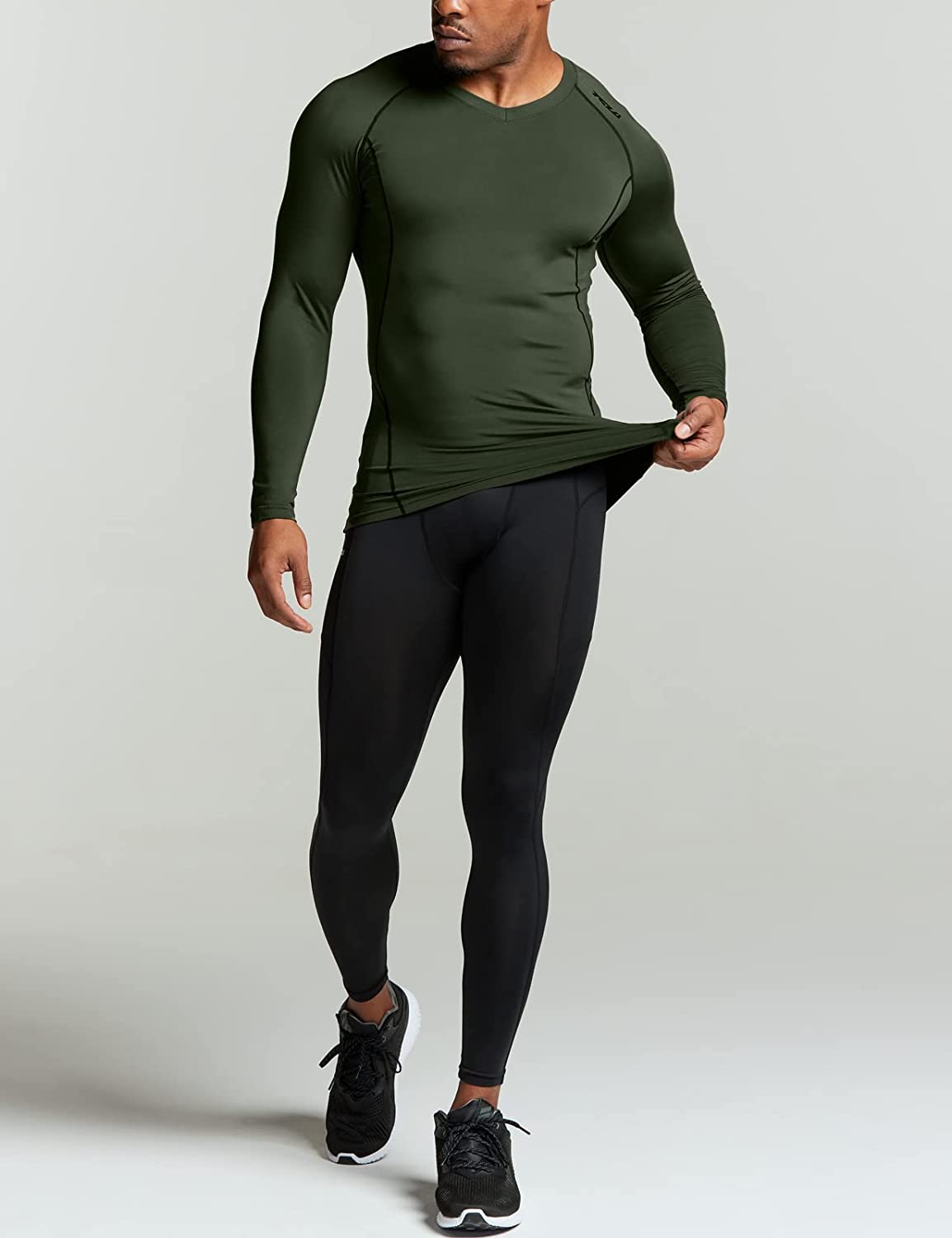 TSLA Men's Thermal V-Neck Long Sleeve Compression Shirts, Athletic Base Layer Top, Winter Gear Running T-Shirt