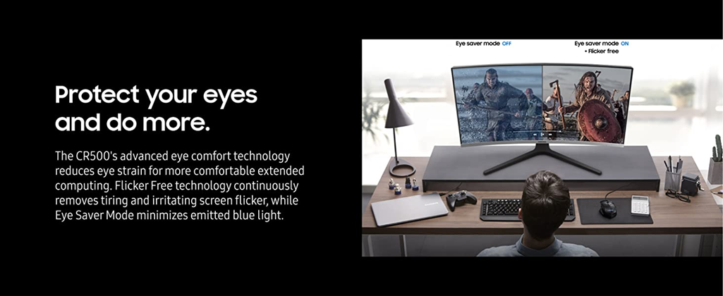 • PROTECT YOUR EYES & DO MORE: Advanced eye comfort technology reduces eye strain for more comfortable extended computing; Flicker Free technology continuously removes tiring & irritating screen flicker, while Eye Saver Mode minimizes emitted blue light
