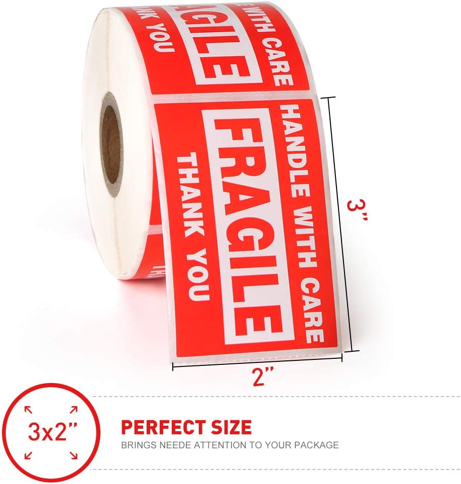 Premium 3" x 2" "Handle with Care Fragile Thank You" self-adhesive sticker. Our fragile sticker helps to reduce the risk of fragile items getting damaged during shipment. Bright and vivid color stickers work perfectly well for anyone who handles or ship the fragile package. High quality self-adhesive material can stick to any surfaces, like plastic, steel, pallet, carton box, etc. Designed for maximum efficiency while printing multiple labels at a time.