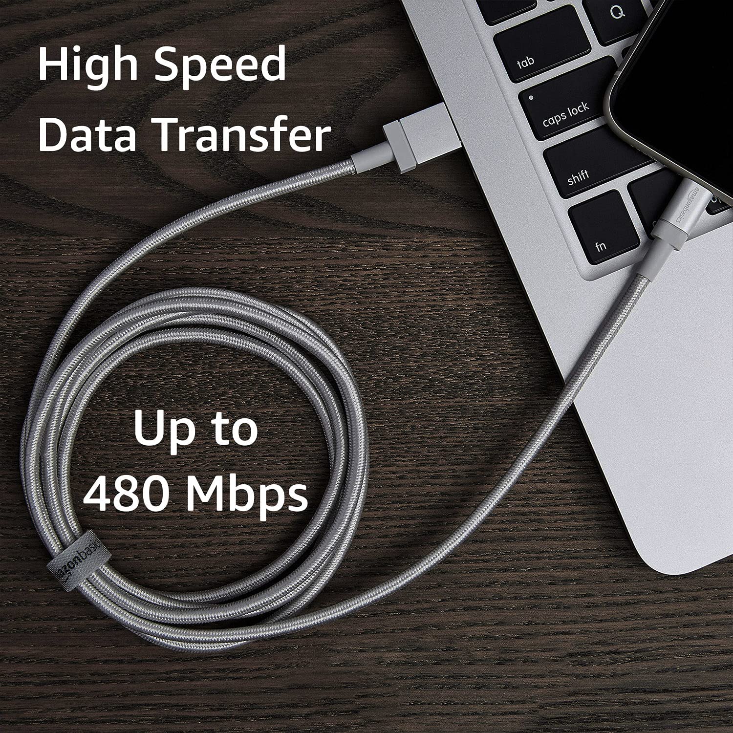 Amazon Basics Nylon USB-A to Lightning Cable Cord, MFi Certified Charger for Apple iPhone, iPad, Silver, 6-Ft