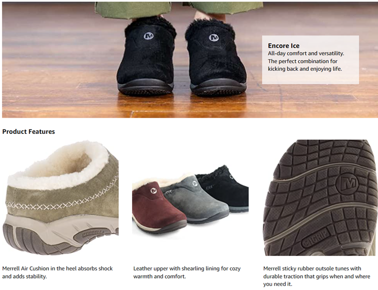 • Pig suede upper Sherling lining Faux sherling lined COMFORTBASE contoured removable footbed for all day comfort EVA foam midsole for stability and comfort M Select GRIP outsole tunes each outsole with durable traction that grips when and where you need it