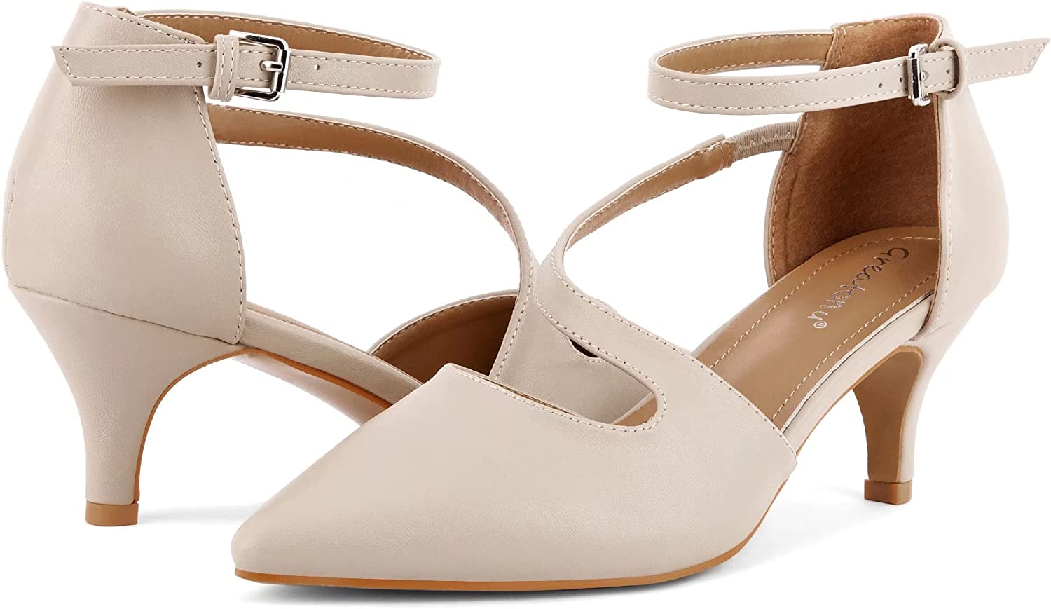 Greatonu Women's Low Heel Pumps Pointed Toe Bridal Wedding Party Kitten Heel Pump Shoes