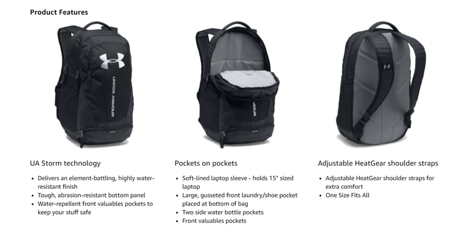 UA Storm technology delivers an element-battling finish.Soft lined laptop sleeve—holds up to 15" MacBook Pro or similarly sized laptop.Water repellent front valuables pocket to keep your stuff safe.