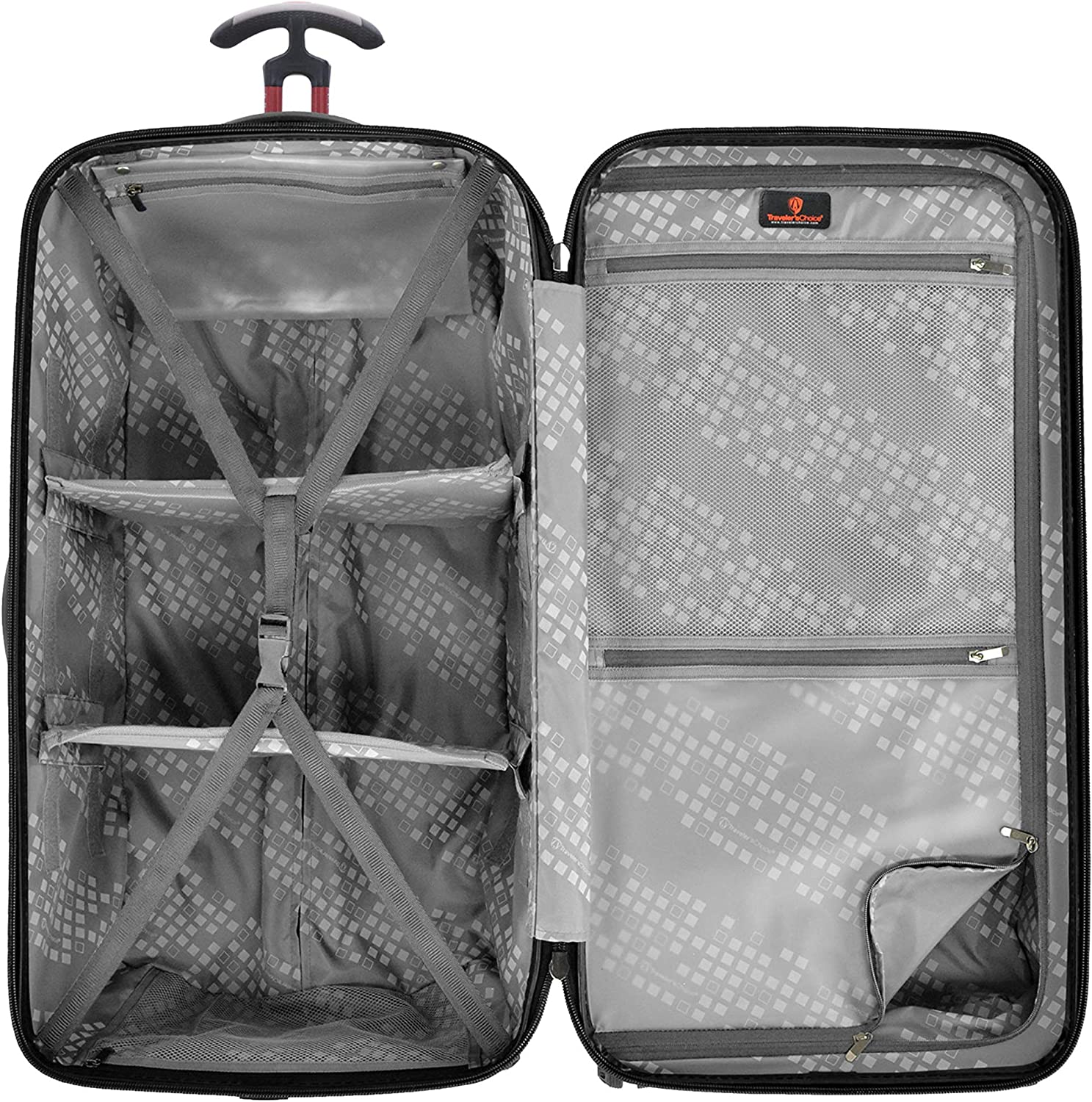 Patent-pending T-Cruiser handle system allows you to maneuver your bag with ease.
