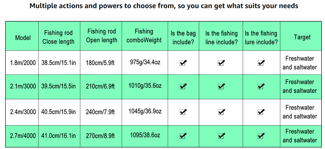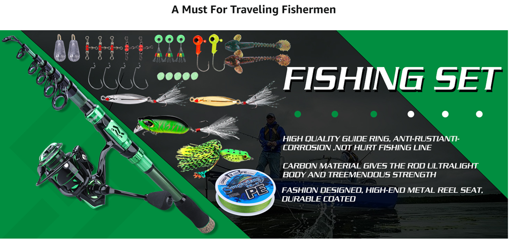 • Only one set of fishing gear is needed for fishing.Full Kit with Carrier Bag - 1 Fishing Rod + 1 Fishing Reel +100m Fishing Line + Various Fishing Lures + Fishing Hooks + Some Necessary Accessories + 1 Carrier Bag.