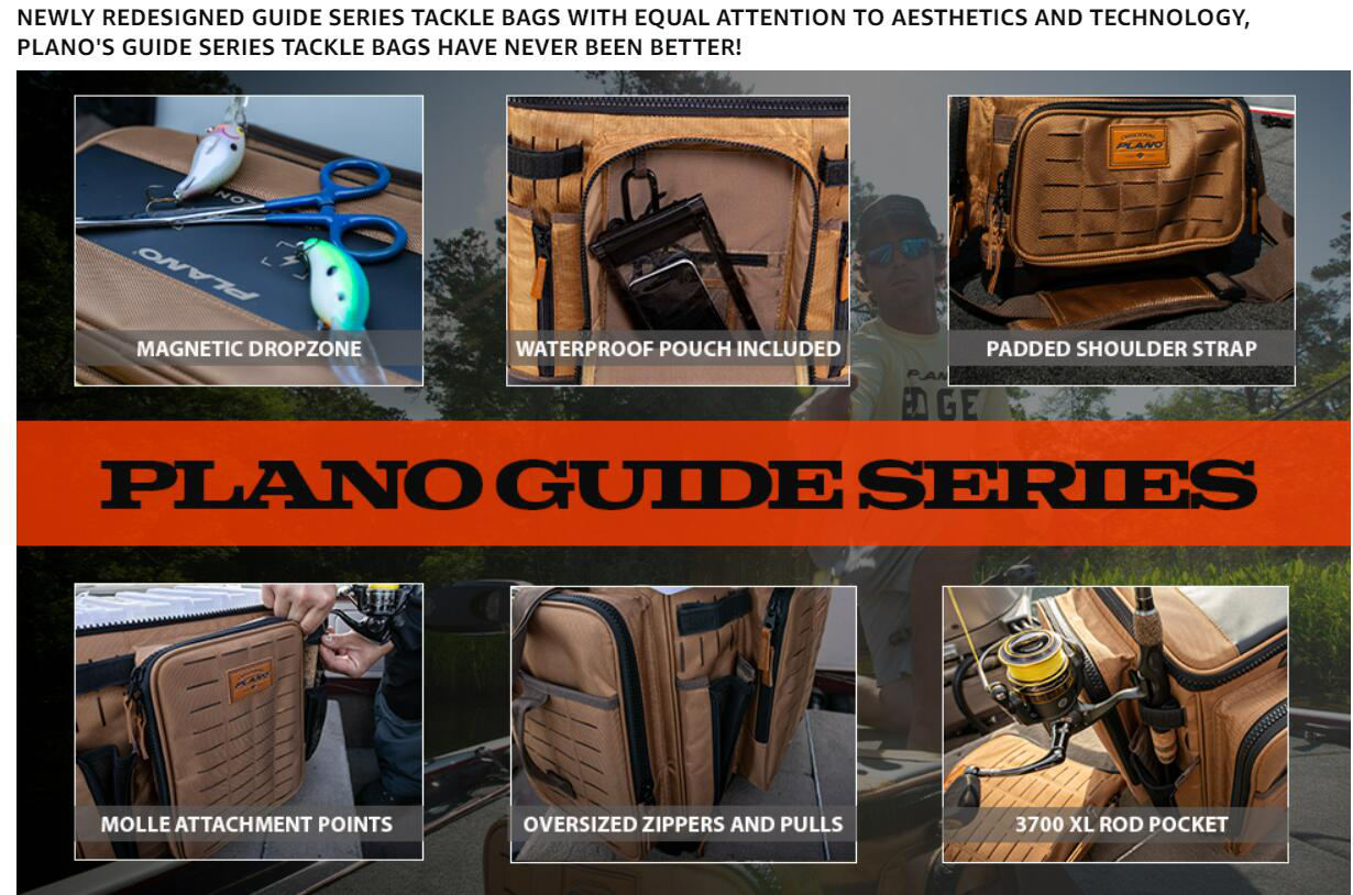 • PLANO GUIDE SERIES 3600 SOFT TACKLE BAG: The 3600 Plano Guide Series tackle bags feature a hard-backed construction of rugged 1680 Denier fabric that will hold its shape for years, making it a quality investment for those constantly on the water.