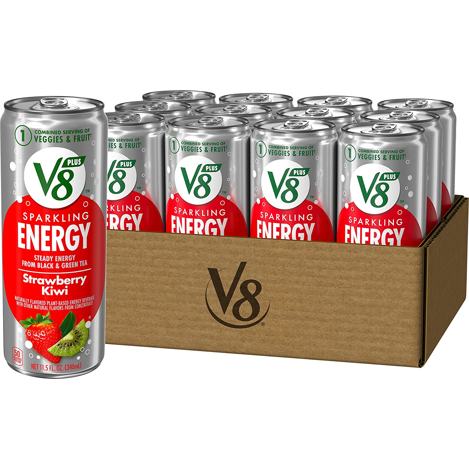 • Fruit Flavored Energy Drinks: Twelve (12) 11.5 fl oz cans of V8 plusSPARKLING ENERGY Strawberry Kiwi Energy Drink