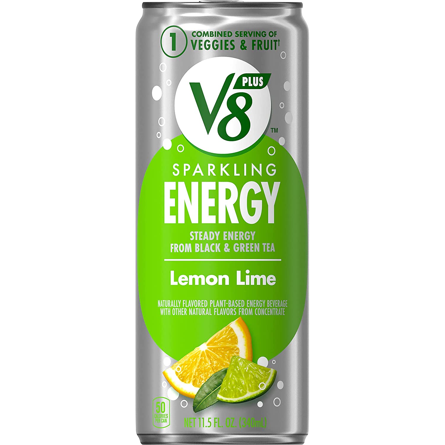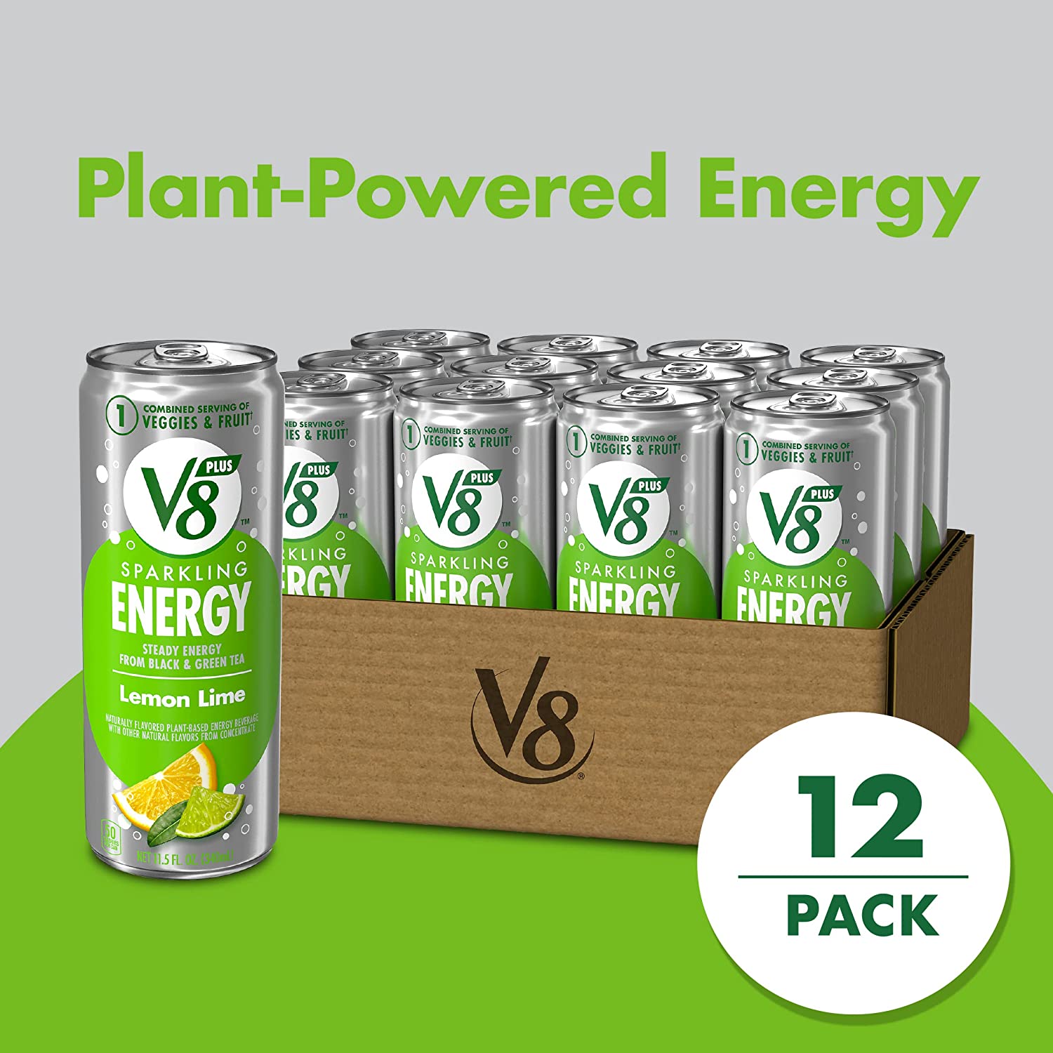 V8 +SPARKLING ENERGY Lemon Lime Energy Drink, Made with Real Vegetable and Fruit Juices, 11.5 FL OZ Can (Pack of 12)