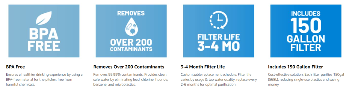 - Water purifier pitcher with filter: Each premium quality gravity water filter produces 150 gallons of fresh, contaminant-free drinking water (lasting 4 times longer than the leading water filter pitcher. Remove 99.99% of all tap water contaminants. 100% BPA-free, 100% Approved Food Grade Materials, 100% Recyclable, 100% Vegan. 0% Pretentious, Kids call it "Next Level" in Spanish they say, Filtros de Agua Para la Cocina,Filtros de Agua, Purificador de Agua