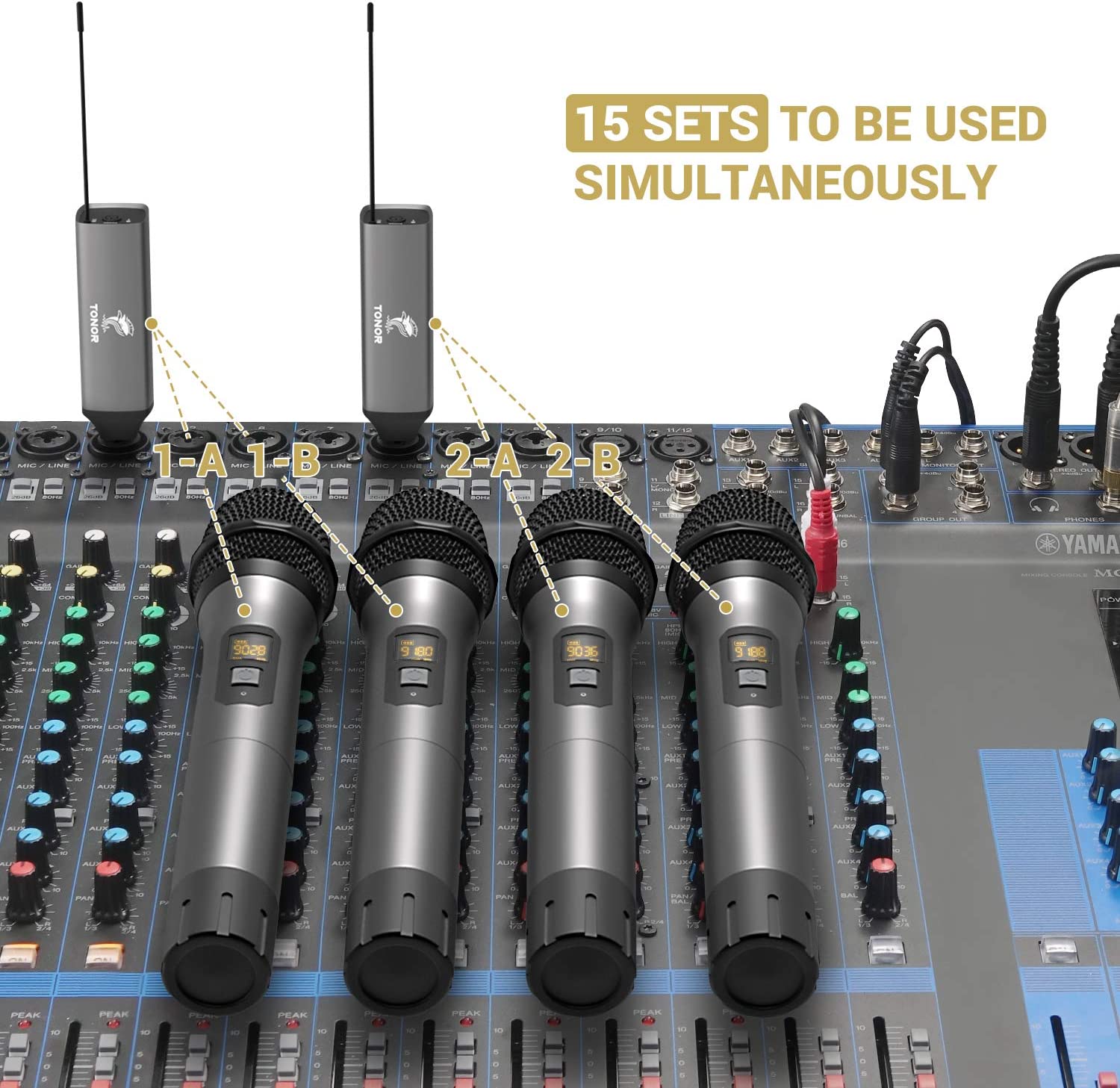 TONOR Wireless Microphone, UHF Dual Cordless Metal Dynamic Mic System with Rechargeable Receiver, for Karaoke Singing, Wedding, DJ, Party, Speech, Church, Class Use, 200ft (TW-630)