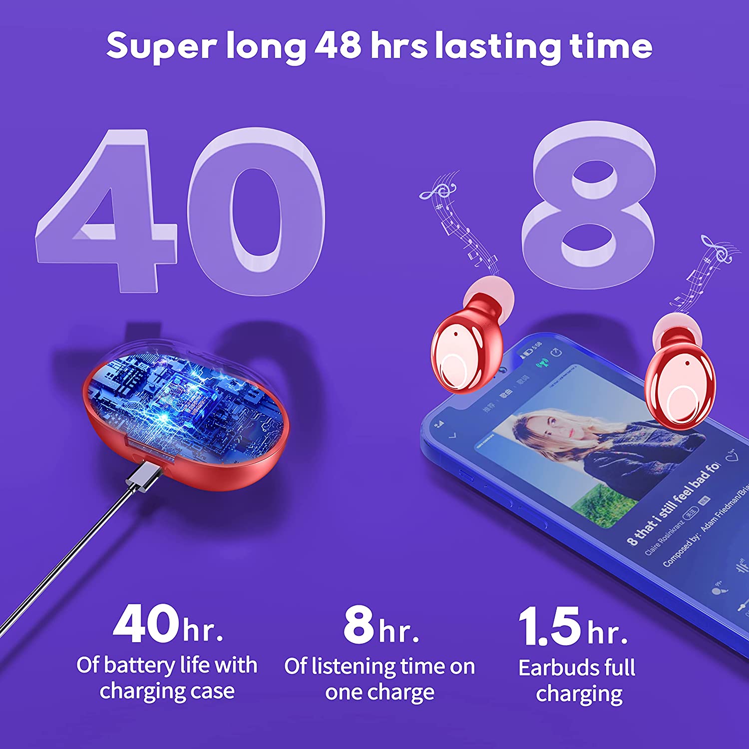 【Latest Bluetooth 5.2 & Effortless Pairing】Kurdene wireless earbuds with advanced bluetooth 5.2 technology owns fast and stable transmission without tangling, which makes the Bluetooth earbuds connect to electronic devices more consistently, providing you with an uninterrupted calling and music experience and Noise cancellation.These bluetooth earphones would instant paired once taken out from the charging case and auto connects with the last-paired device.