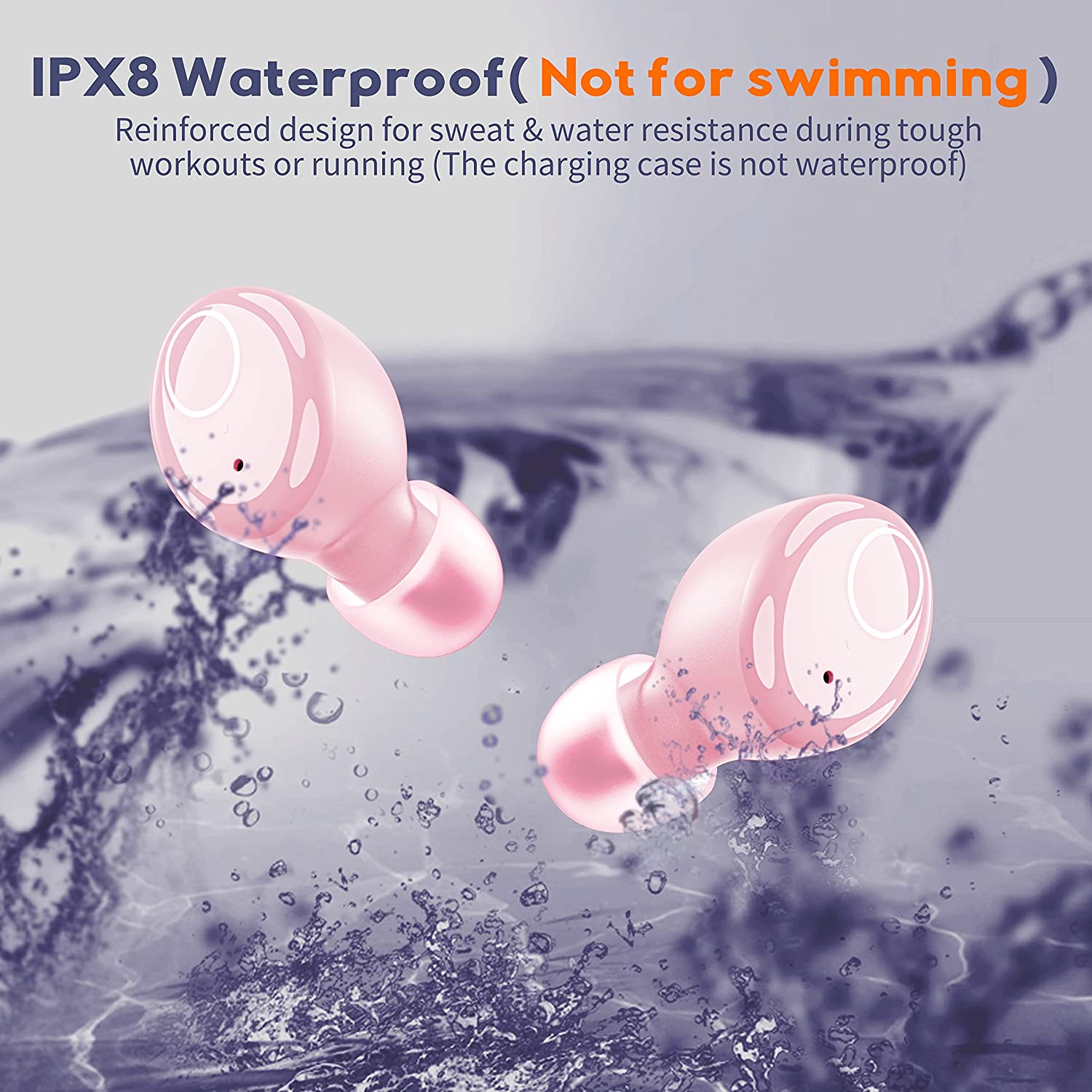 【IPX8 Waterproof & Sweatproof】With an IPX8 rating, this wireless earbuds are resistant to sweat, water and rain. S8 wireless earbuds can endure and work flawlessly under different weather conditions. There’s nothing holding you back from running through the storm or sweating out your new personal best in the gym.(Please note: The charging case is not waterproof)