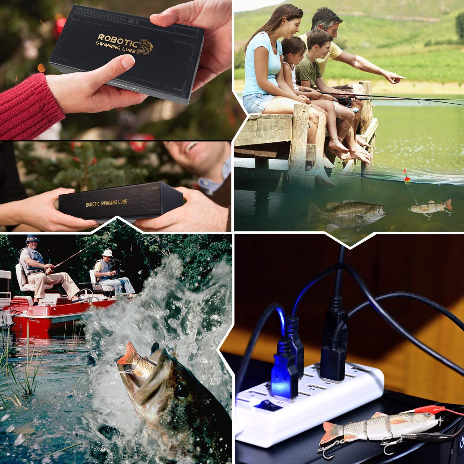 • ?【Saltwater lure】After charging for 3~4 hours, Robotic Swimming Lure can work intelligently for 1~1.5 hours. It uses a USB charging interface, which is very convenient for charging and can solve the problem of long charging time. Anticreep's proprietary technology protects the charging unit and battery from salt water exposure and corrosion.