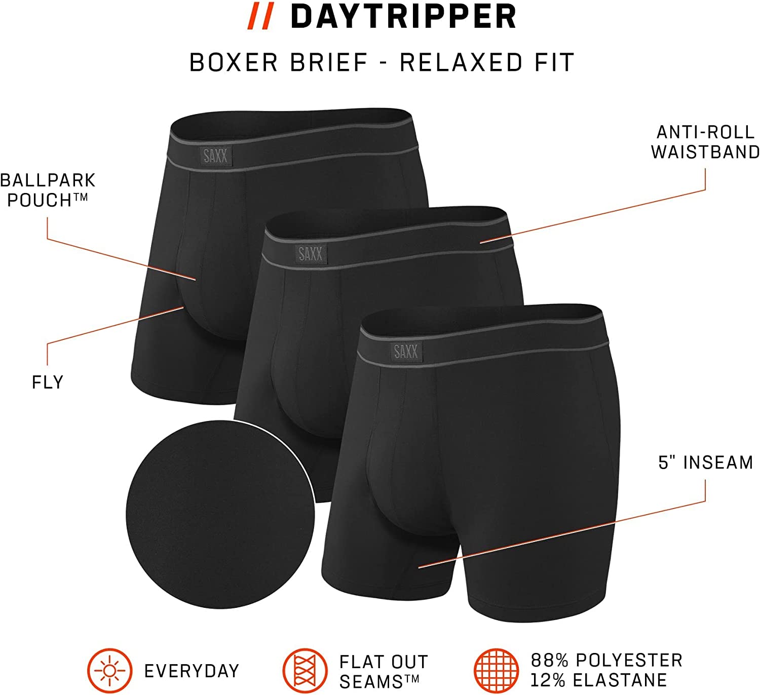 SAXX Men's Underwear - DAYTRIPPER Boxer Briefs with Built-In Pouch Support – Pack of 3, Underwear for Men