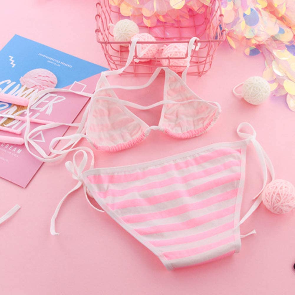 Oludkeph 3 PCS Sexy Japanese Cute Anime Lingerie Set for Women with Striped Thigh High Socks Bikini