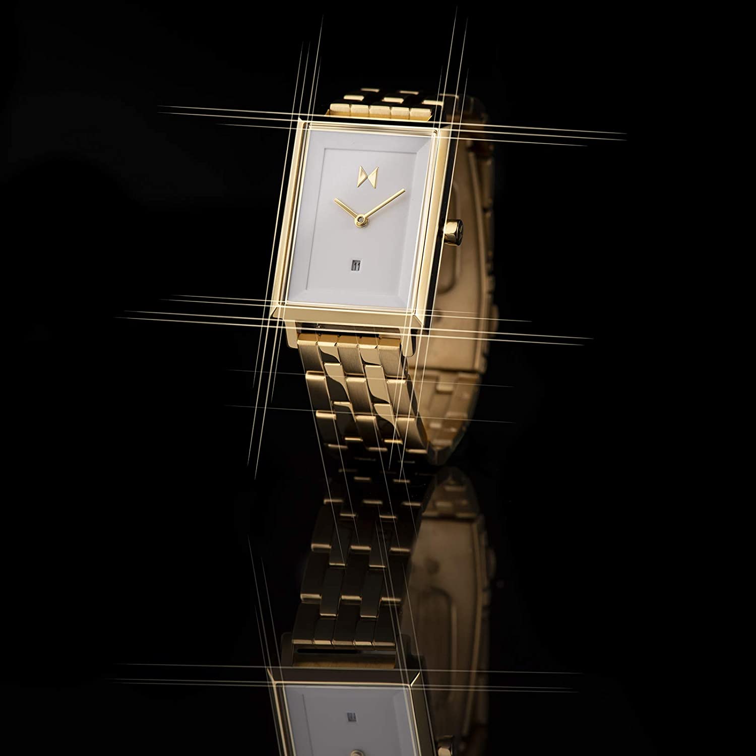 NOSTALGIC SQUARE SHAPE- Featuring a battery powered 2 hand Quartz movement with date, a geometric concave dial and elegant bracelet bands.