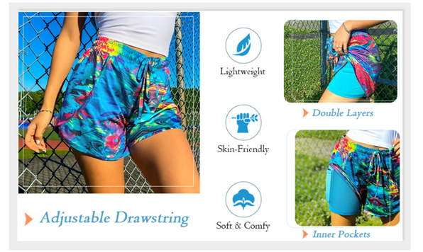 Adjustable Drawstring/ Hidden Pocket/ Inner Layer/ Non See-through 2 in 1 Running Shorts/ Elastic Waistband closure