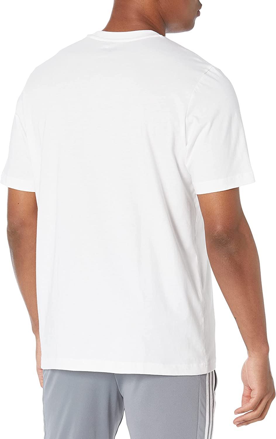 A big basketball-inspired adidas Badge of Sport emblazoned across the front of this men's t-shirt shows your love for hoops. The all-cotton jersey fabric and ribbed crewneck keep it classic and comfortable.