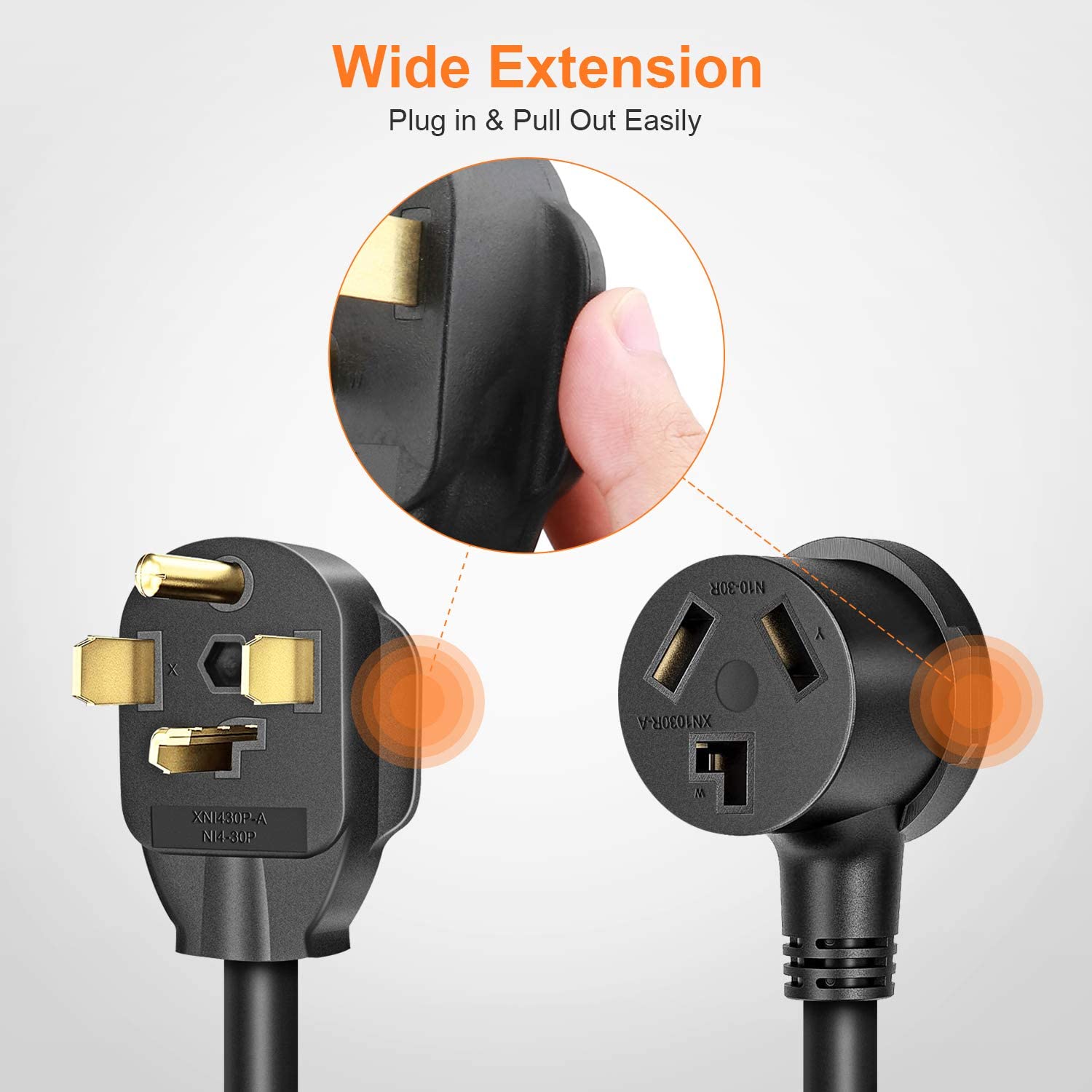 - Dryer Adapter Cord: Cleyean dryer adapter can connects the 3-prong plug of your dryer to the 4-slot outlet in your house. Nema 14-30 plug connect to the wall outlet. Nema 10-30 socket connect to your dryer plug.