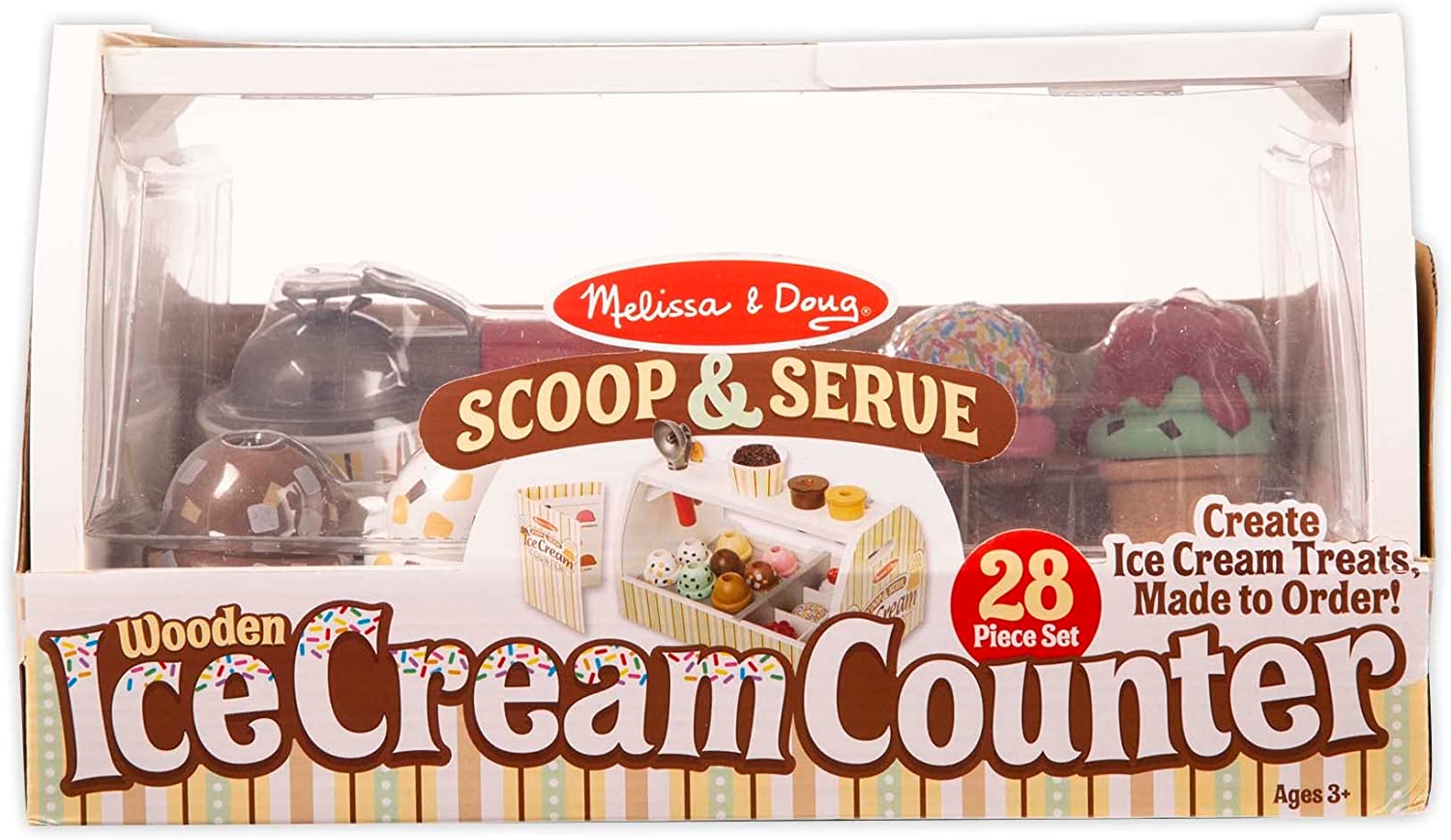 Melissa & Doug Wooden Scoop and Serve Ice Cream Counter (28 pcs) - Play Food and Accessories - Pretend Food Toys, Ice Cream Shop Toys For Kids Ages 3+