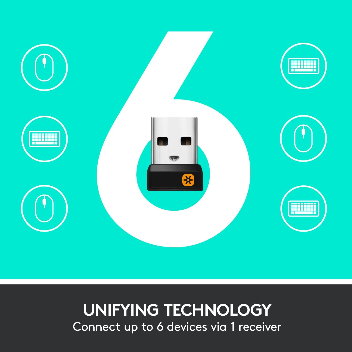 - Wireless Freedom: One tiny unifying receiver pairs up to 6 compatible devices; creating a clutter-free workspace; the USB receiver provides a strong; reliable connection within up to 33 feet (3)