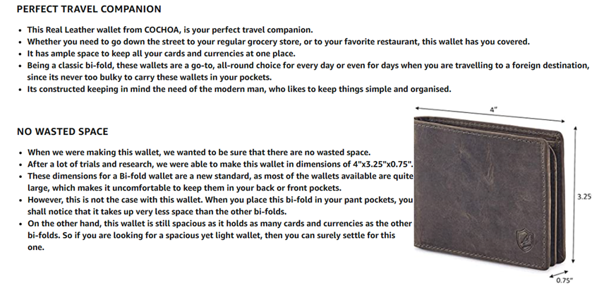 • <p>★REAL LEATHER: This wallet is MADE IN INDIA and comes in 3 leather qualities, namely Nappa, Crazy Horse & Distressed. Nappa leather is conventional drum dyed leather which is finished with natural pigments to attain a smooth and buttery touch, while Crazy Horse is vegetable tanned and sprayed with oils and waxes and Distressed is aged using a combination of special waxes which in turn gives a Vintage & Weathered look. </p>