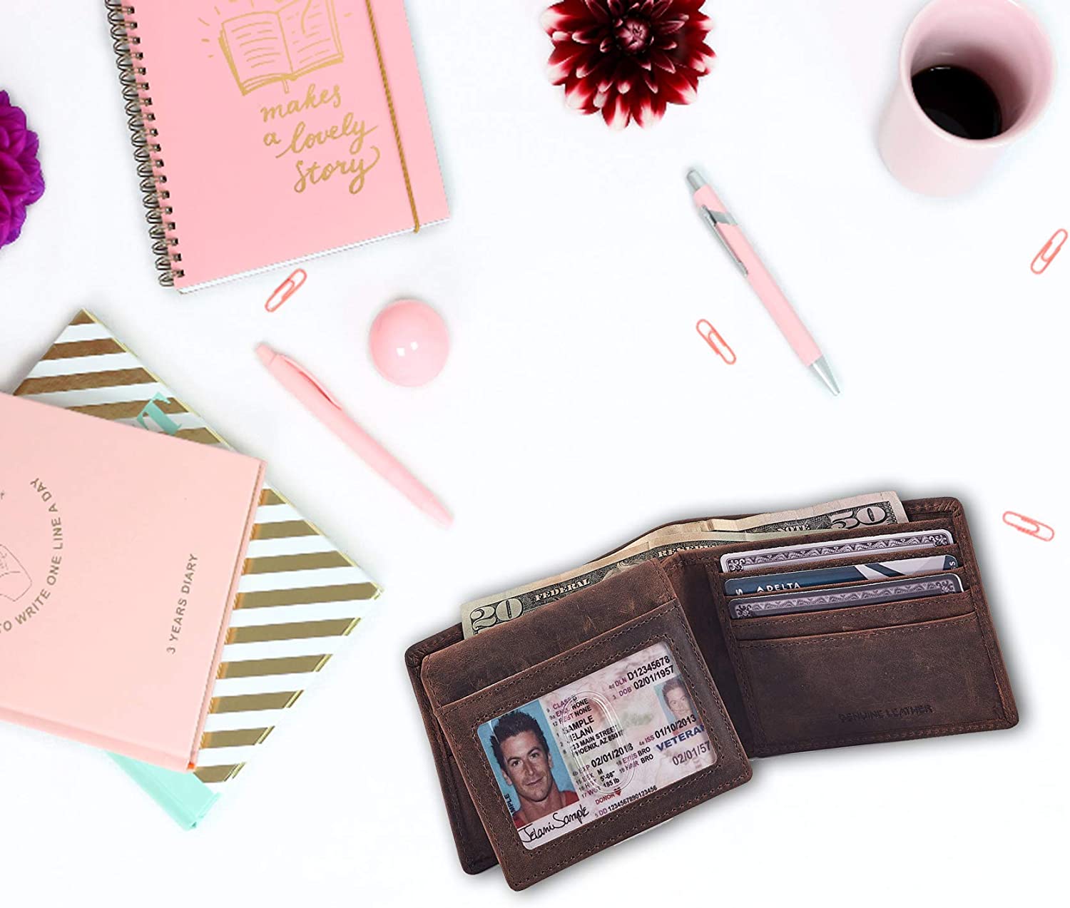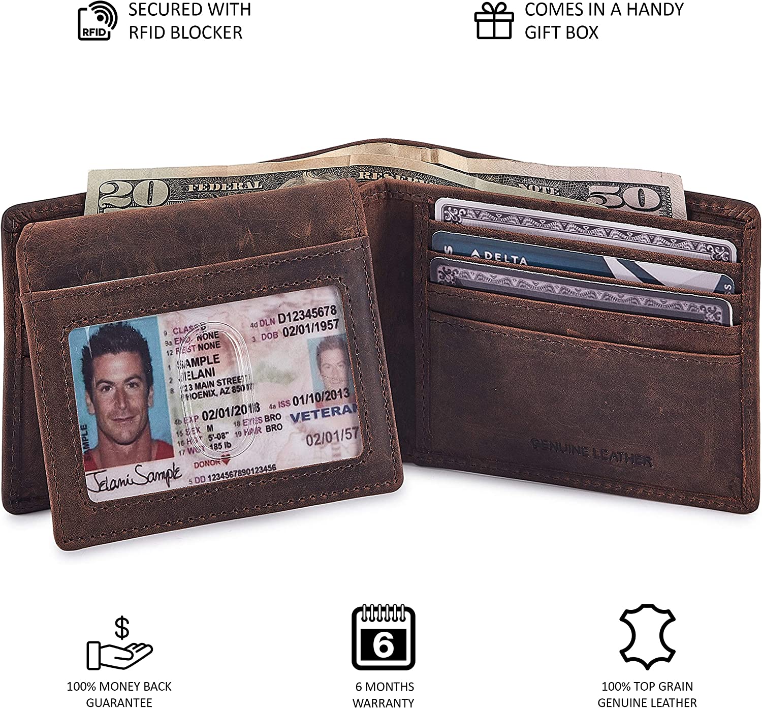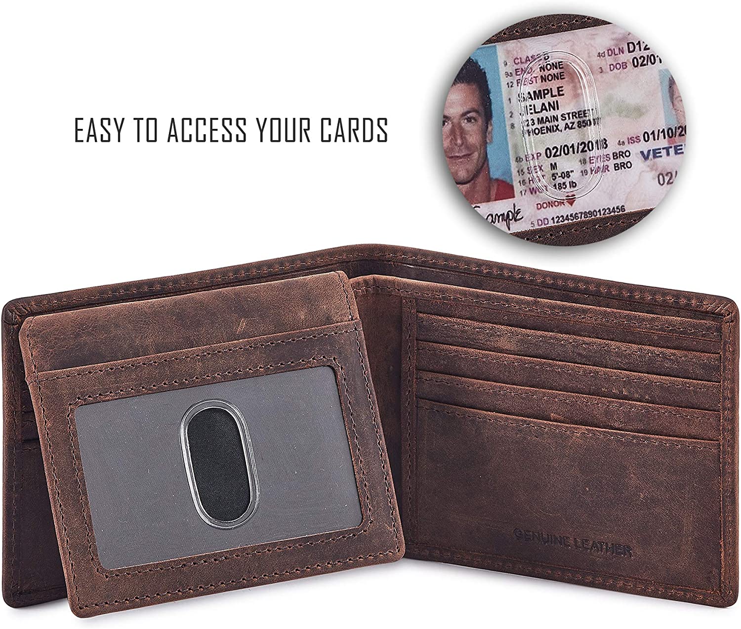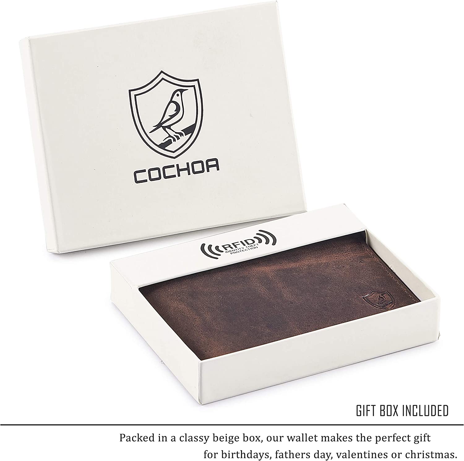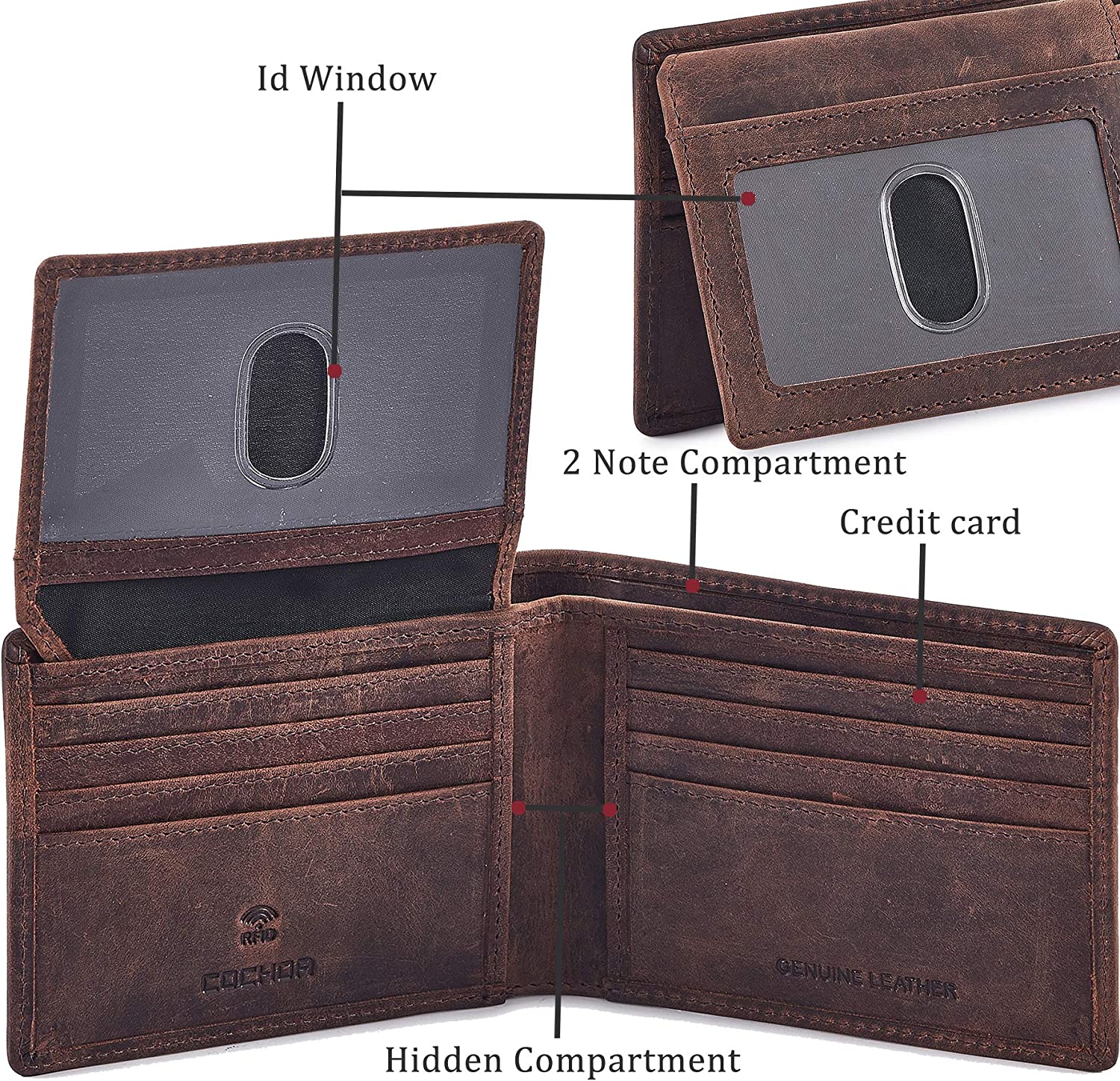 Cochoa Men's Real Leather RFID Blocking Bifold Wallet Stylish Anti Theft Security With 2 ID Window