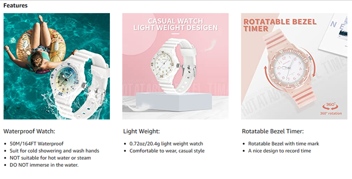 • 50M Waterproof Watch: No worry about swimming, rain or washing hands. but please DO NOT press any buttons in the water and not for hot water.