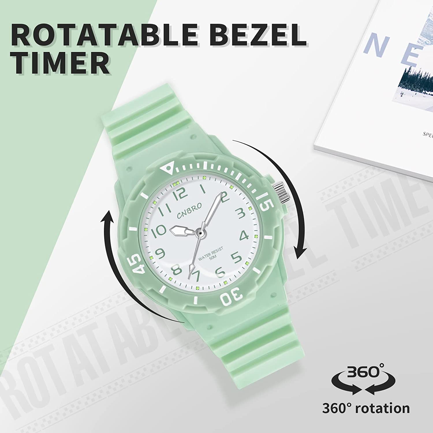 • Small Elegant Watch: The colorful watch featuring bi-directoinal bezel and round dial with 12-hour mark. Catch people's eyes in crowd easily.