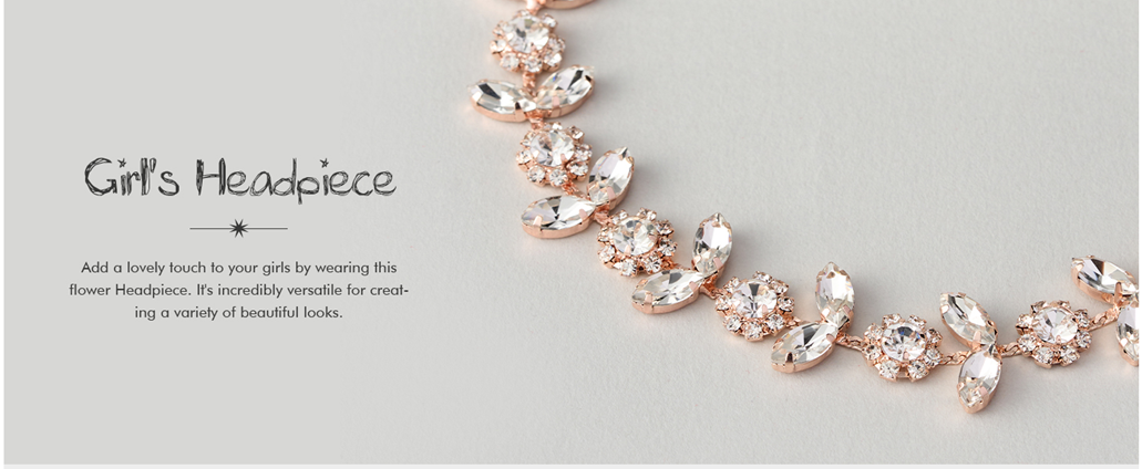 ❀This flower girl headpiece is adorned with sparkling crystal flowers and leaves. Available on soft adjustable ribbon that stays comfortable on your girl's head.
