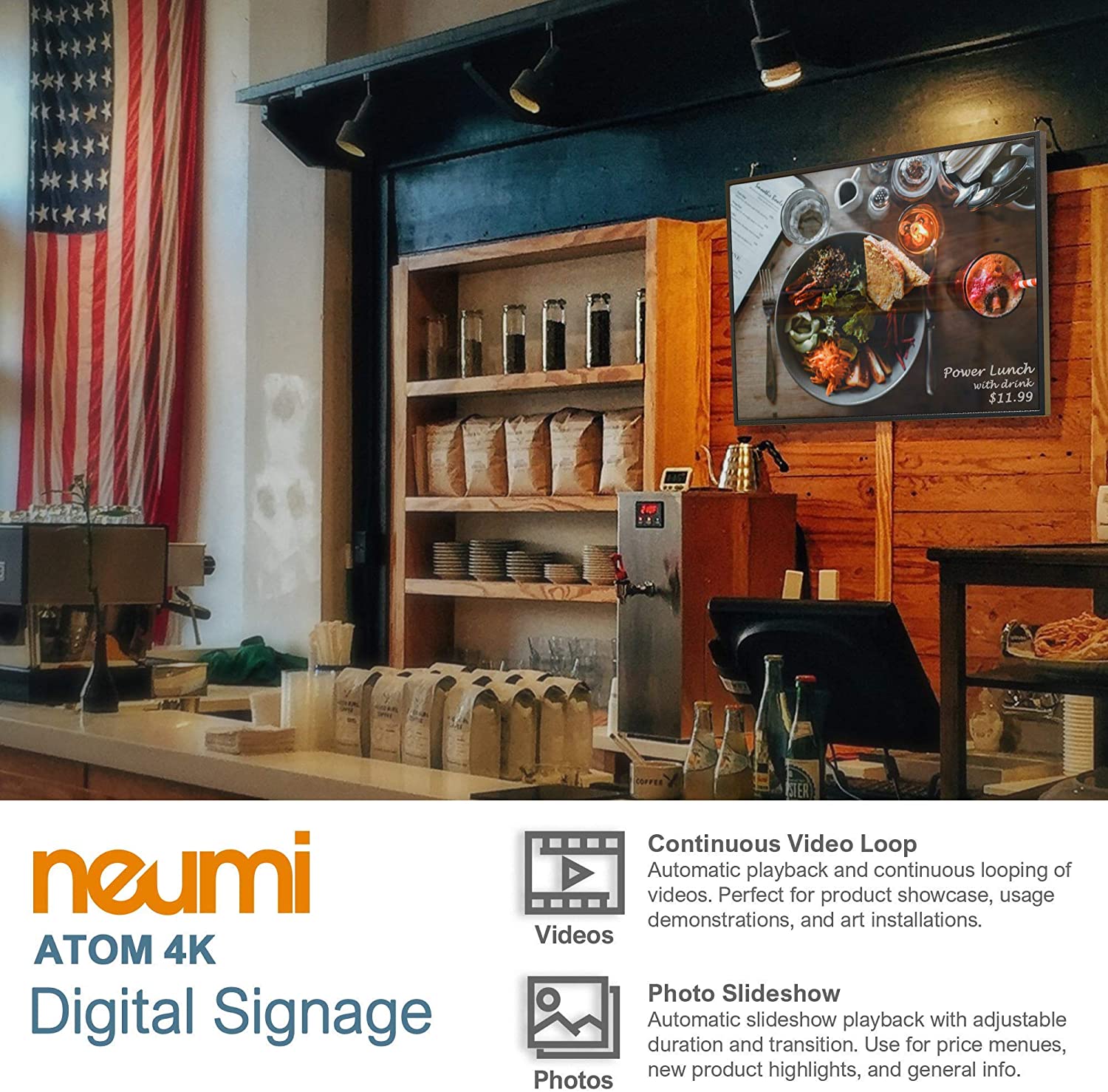 NEUMI Atom 4K Ultra-HD Digital Media Player for USB Drives and SD Cards - Plays 4K/UHD 60fps Videos, HEVC/H.265, HDMI and Analog AV, Automatic Playback and Looping Capability