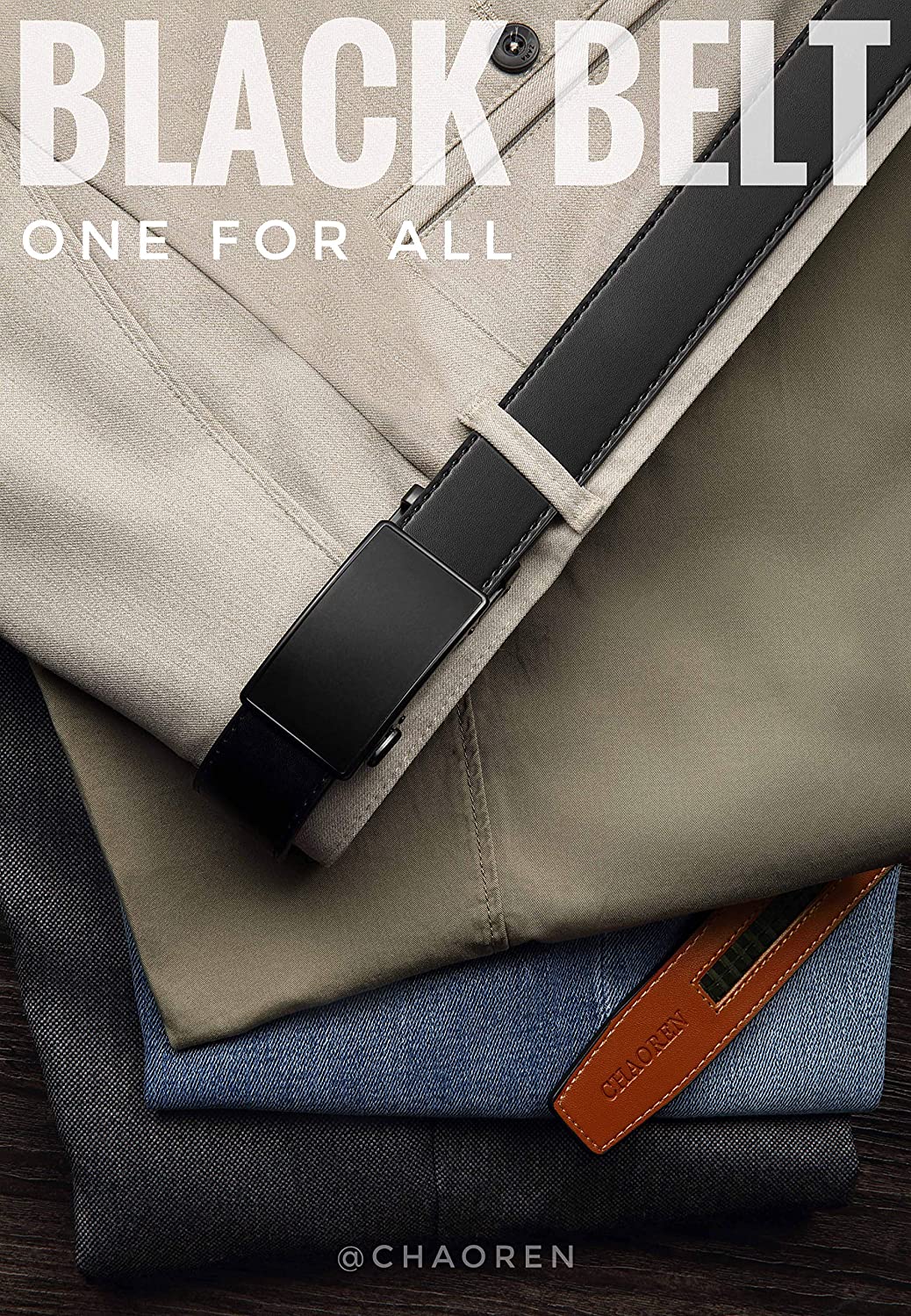 - FOR EXACT FIT - Mens dress belt allows for up to 1/5" adjustments for perfect fit everywhere. The Rachette belt features an easily removable buckle that allows you to cut the black belt to your ideal size.