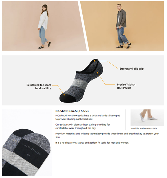 MONFOOT Women's and Men's 10-Pairs Breathable No-Show Non-slip Socks