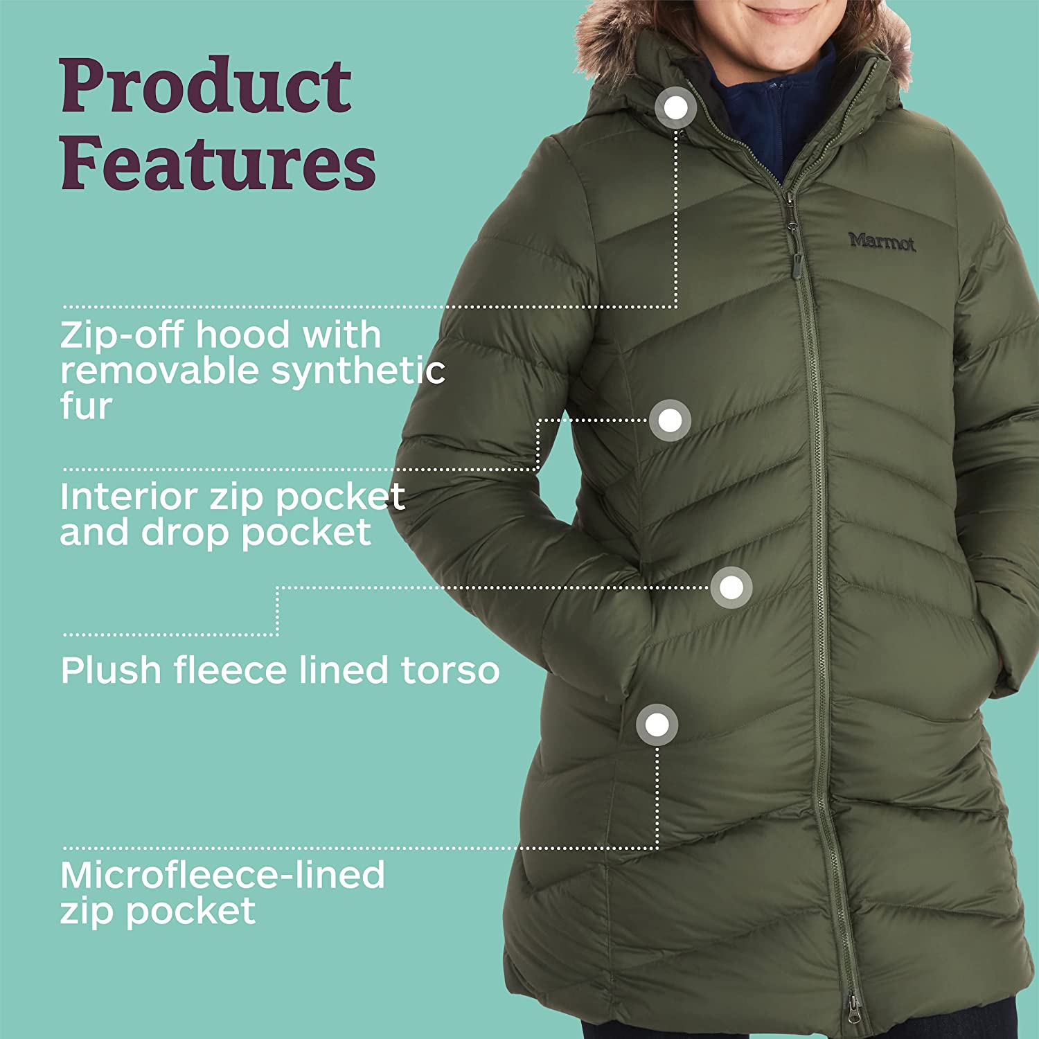 Marmot Montreal Women's Mid-Thigh Length Down Puffer Coat, Fill Power 700