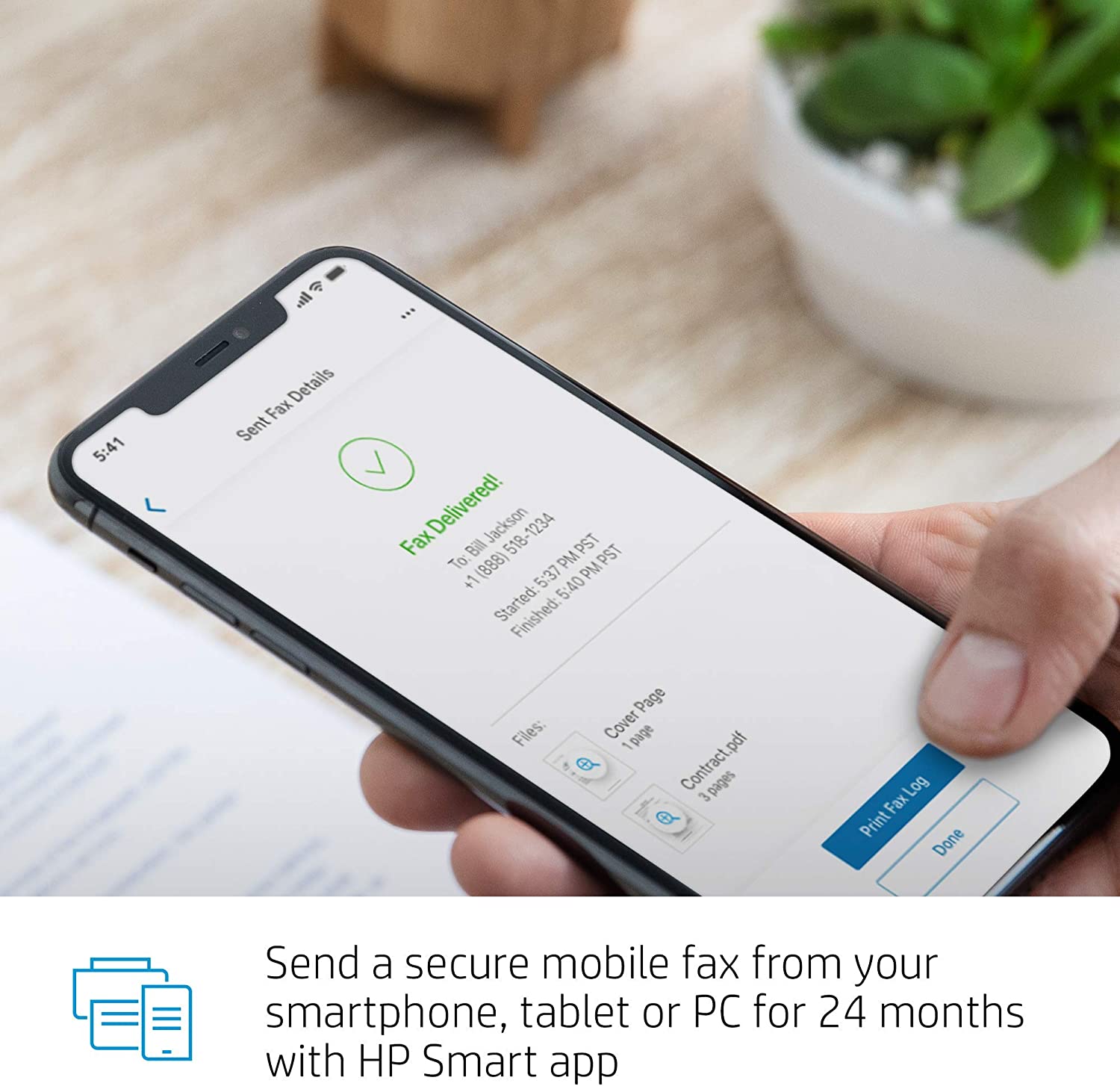 - Send mobile faxes with the HP Smart app: Sending a fax should be as simple as sending an email; this wireless printer lets you fax on-the-go, right from your smartphone, tablet, or PC for 12 months using the HP Smart app