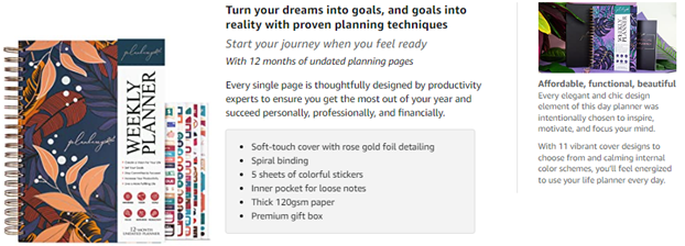 - ✓ PREMIUM EDITION DESIGN, GIFT BOX & EXTRAS – This premium edition agenda planner is made using high-quality materials and has a soft-touch hardcover with rose gold detailing, sturdy double wire binding, thick 120gsm bleed-resistant paper, and a back pocket for loose notes. The day planner comes inside an elegant gift box, with 6 sheets of colorful stickers and a detailed user guide with step-by-step instructions.