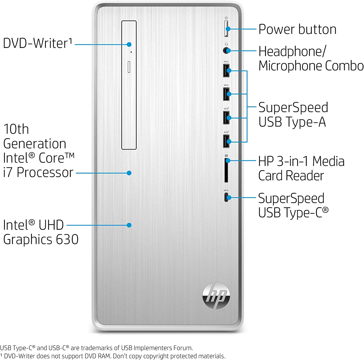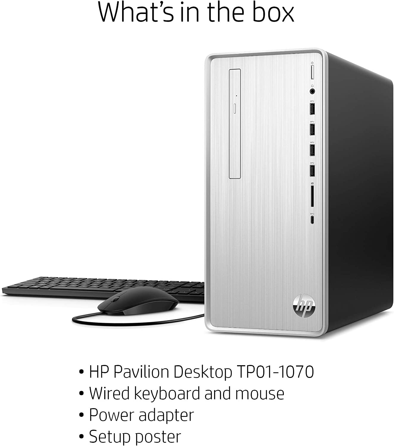 HP Pavilion Desktop, 10th Gen Intel Core i7-10700 Processor, 16 GB RAM, 1 TB hard drive + 256 GB SSD, Windows 10 Home (TP01-1070, Silver)