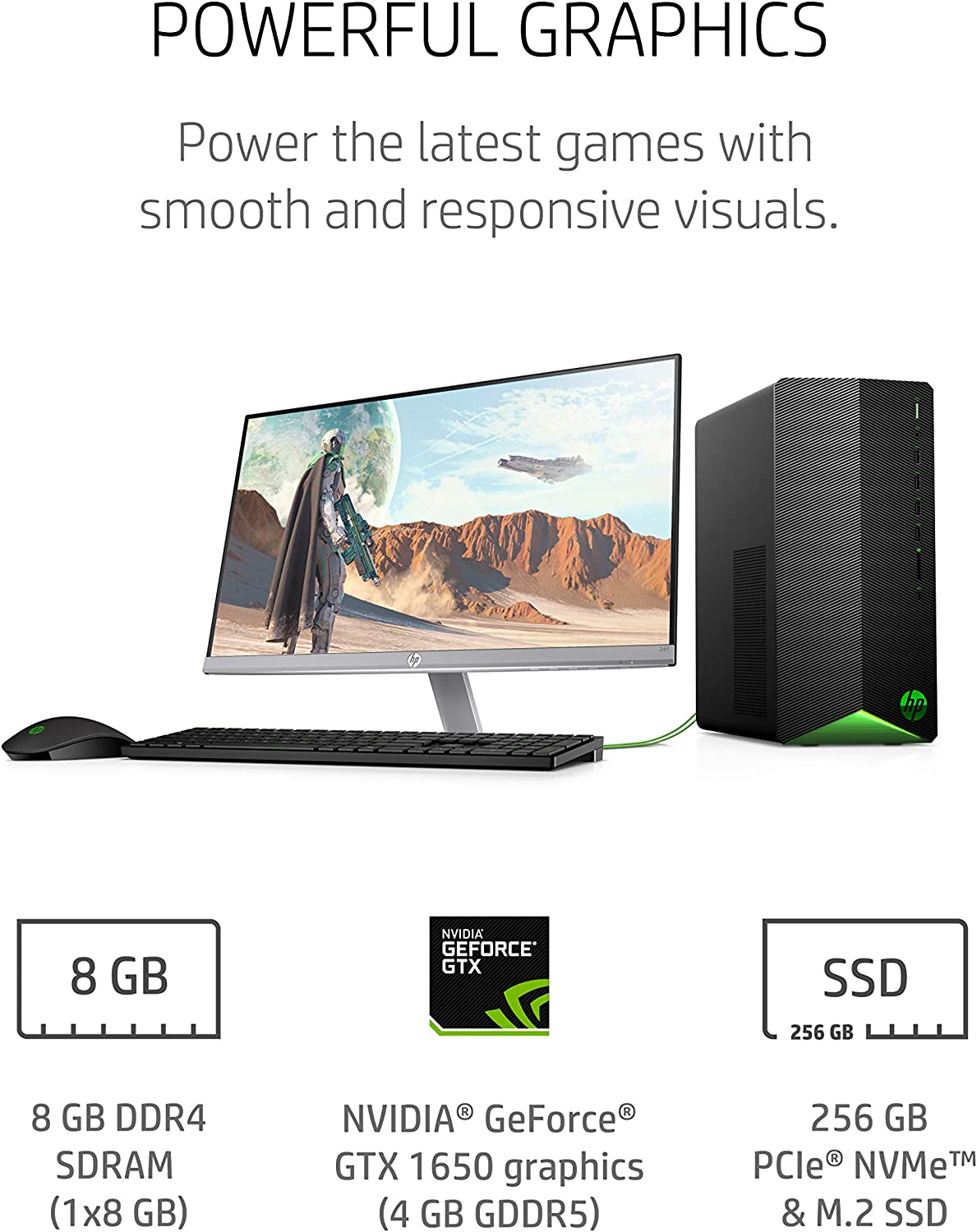 - STUNNING GRAPHICS – With the all-new NVIDIA Turing architecture and 4 GB GDDR5 dedicated memory, you’ll get all the power you need for fast, smooth, and power-efficient performance from the NVIDIA GeForce GTX 1650 graphics card