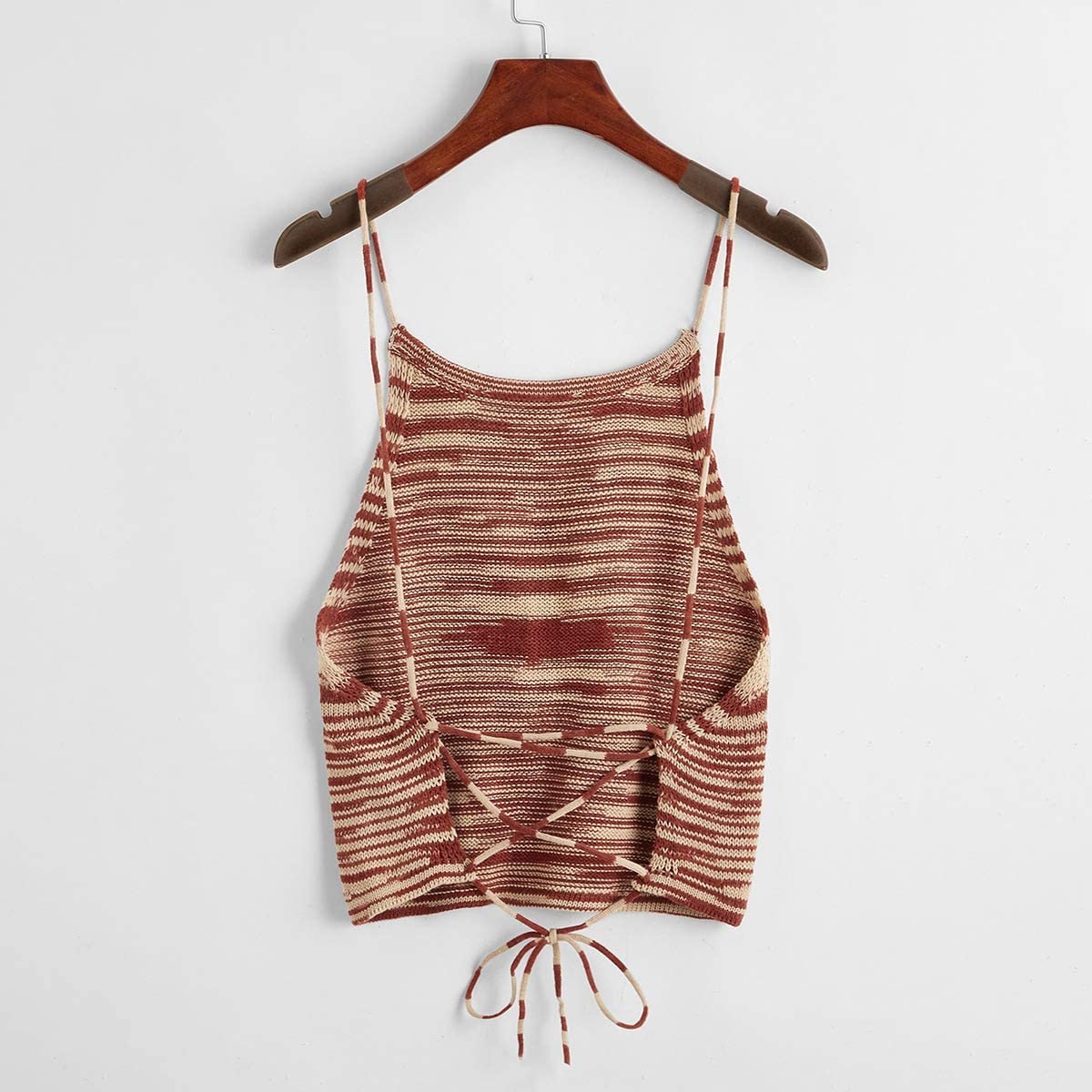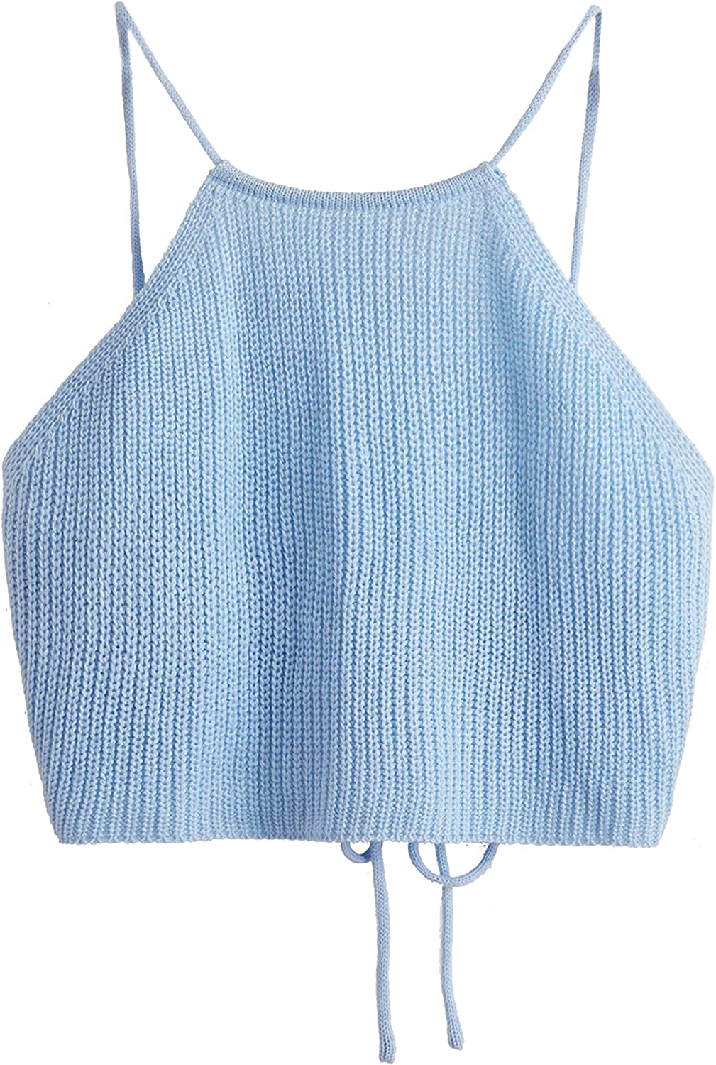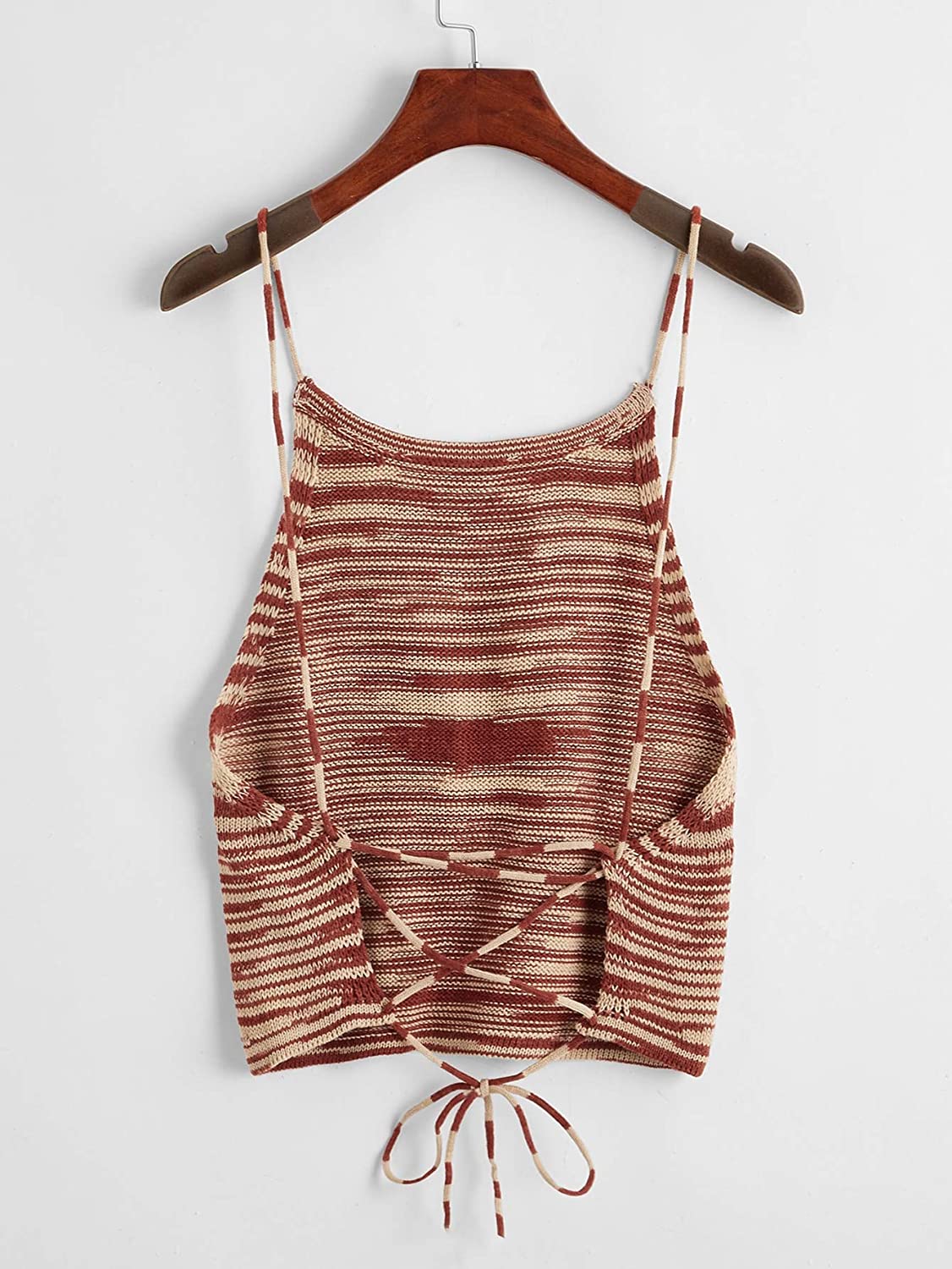 SweatyRocks Women's Sleeveless Space Dye Knit Camisole Criss Cross Backless Crop Top