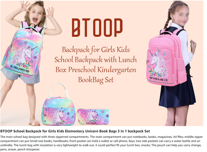 The cute kids backpack set has padded adjustable straps and padded cushion for carry comfort and protect your back, padded cushion can protect laptop or tablet.