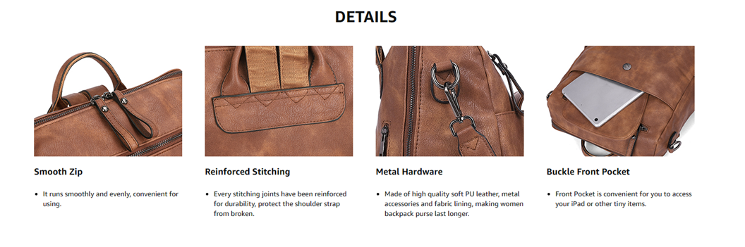 • Durable Material: Made of high-quality PU leather with reinforced stitching, gun-tone hardware, soft fabric lining, and durable canvas shoulder straps, double zip design for convenience. Buckle front pocket design as an eye-contacting element, gives you confidence with this leather backpack purse.