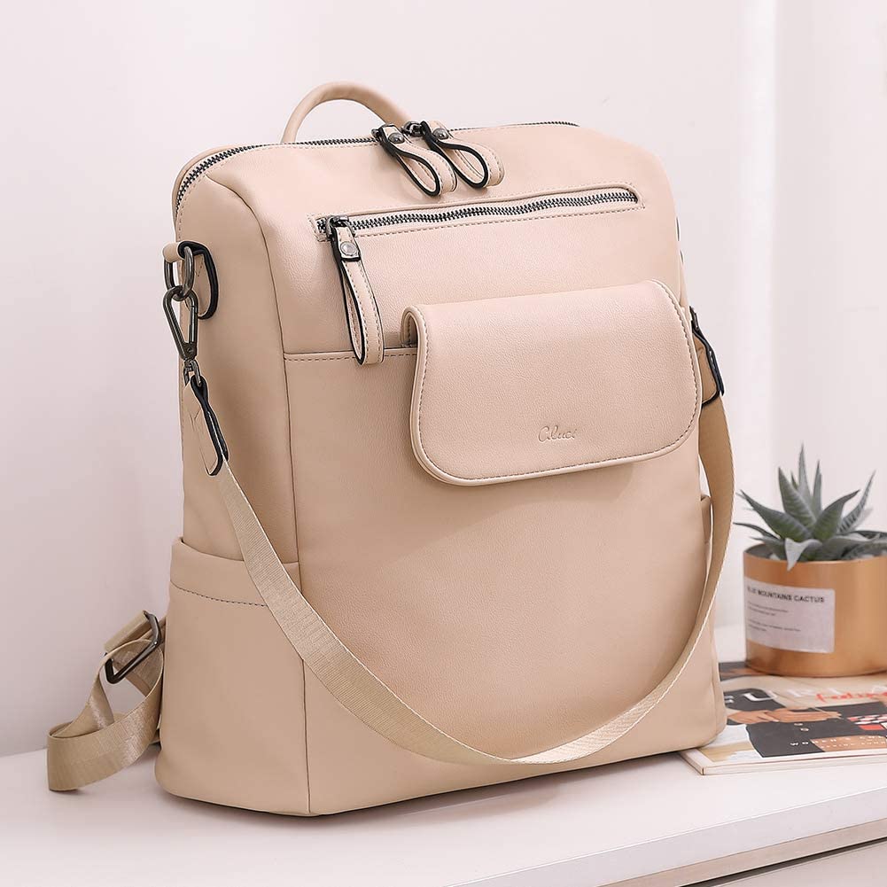 CLUCI Leather Backpack Purse for Women, Large Fashion Convertible Anti-theft, Travel Backpack Purses