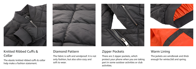 - [Fashion] Full ziper jacket; Elastic knitted ribbed cuffs & hem for better fit;