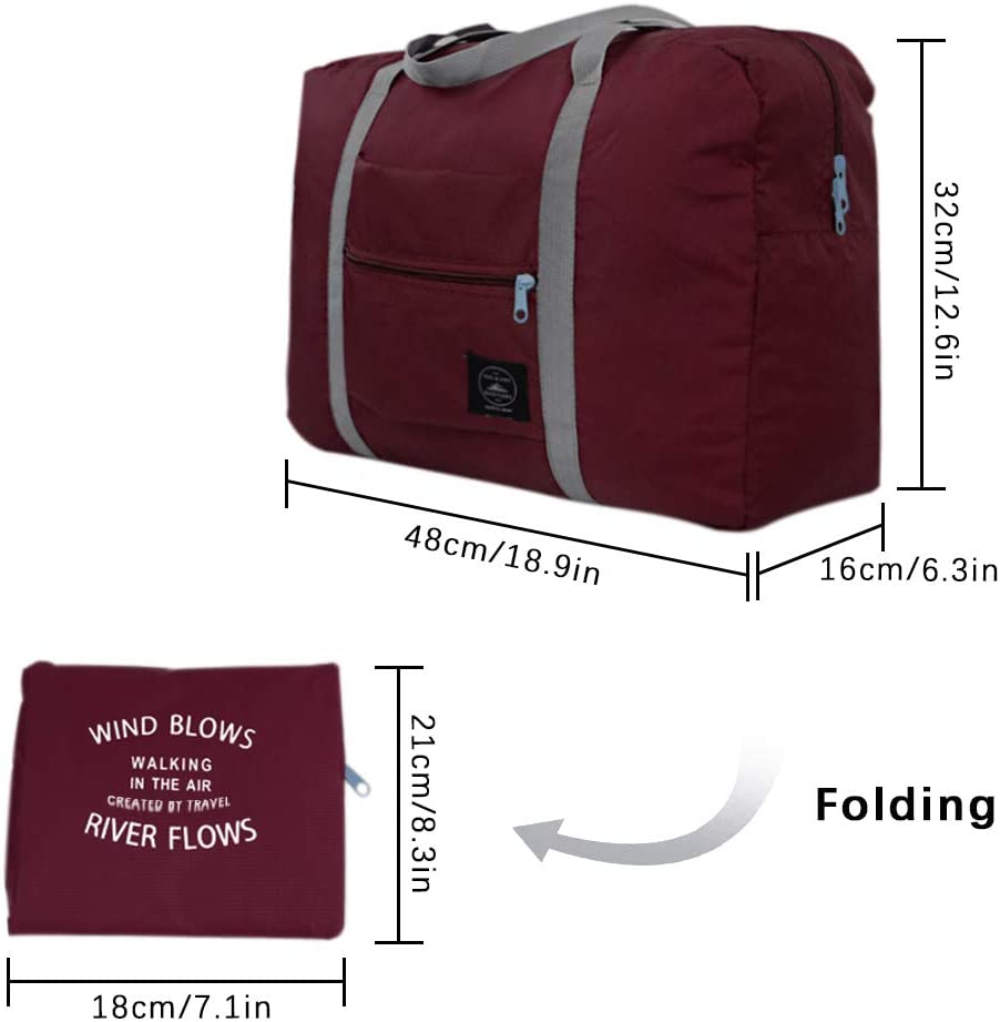 • ➊Size -- Unfolded size: 18.9" x 12.6" x 6.3", folded size: 8.3" x 7.1" x 1"; 4 colors for you to choose: wine red, navy blue, sky blue, light pink. The spacious space is convenient for organizing the items you need when traveling.